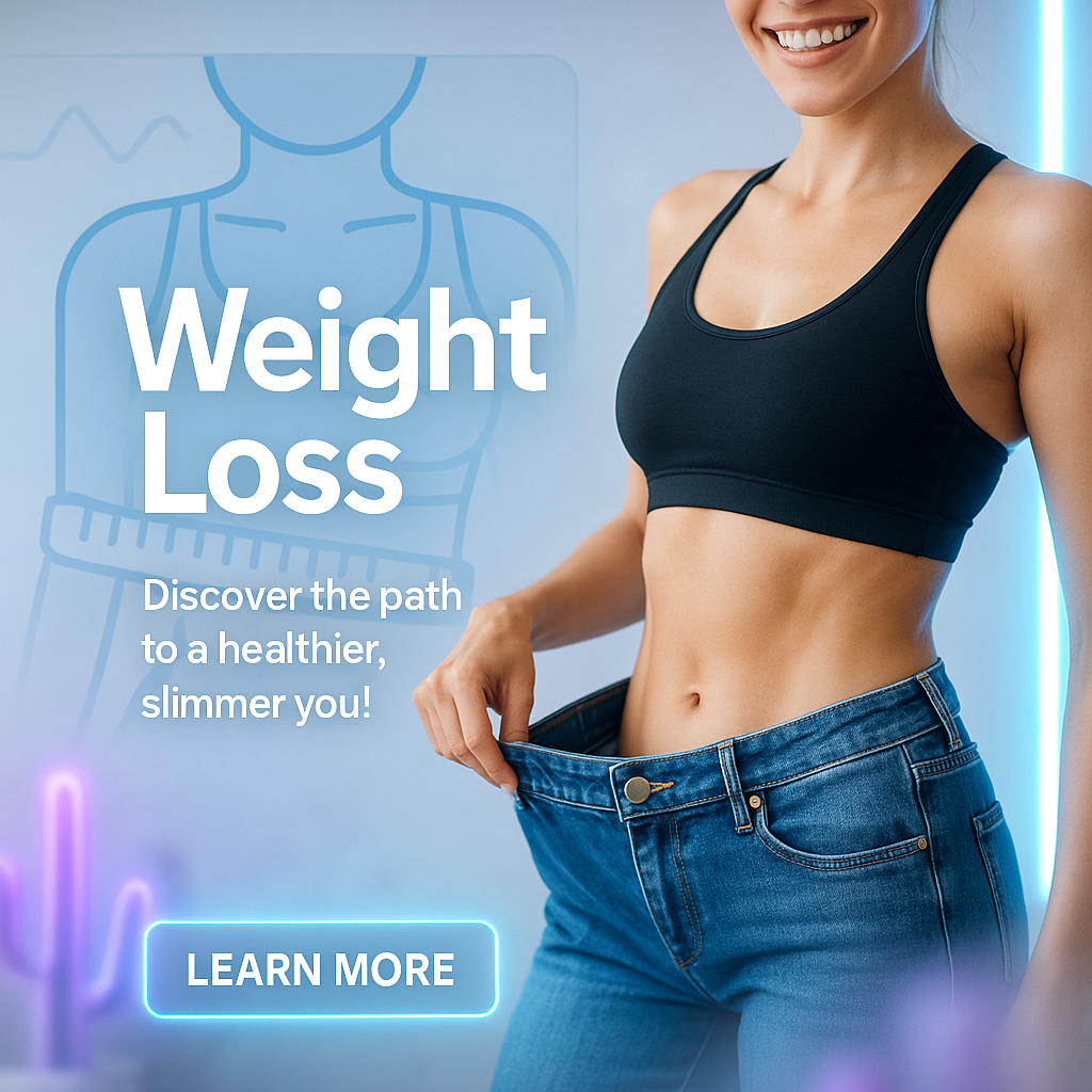 Vibrant promotional image for weight loss featuring a confident individual showcasing their progress. Ideal for health and fitness marketing campaigns.
