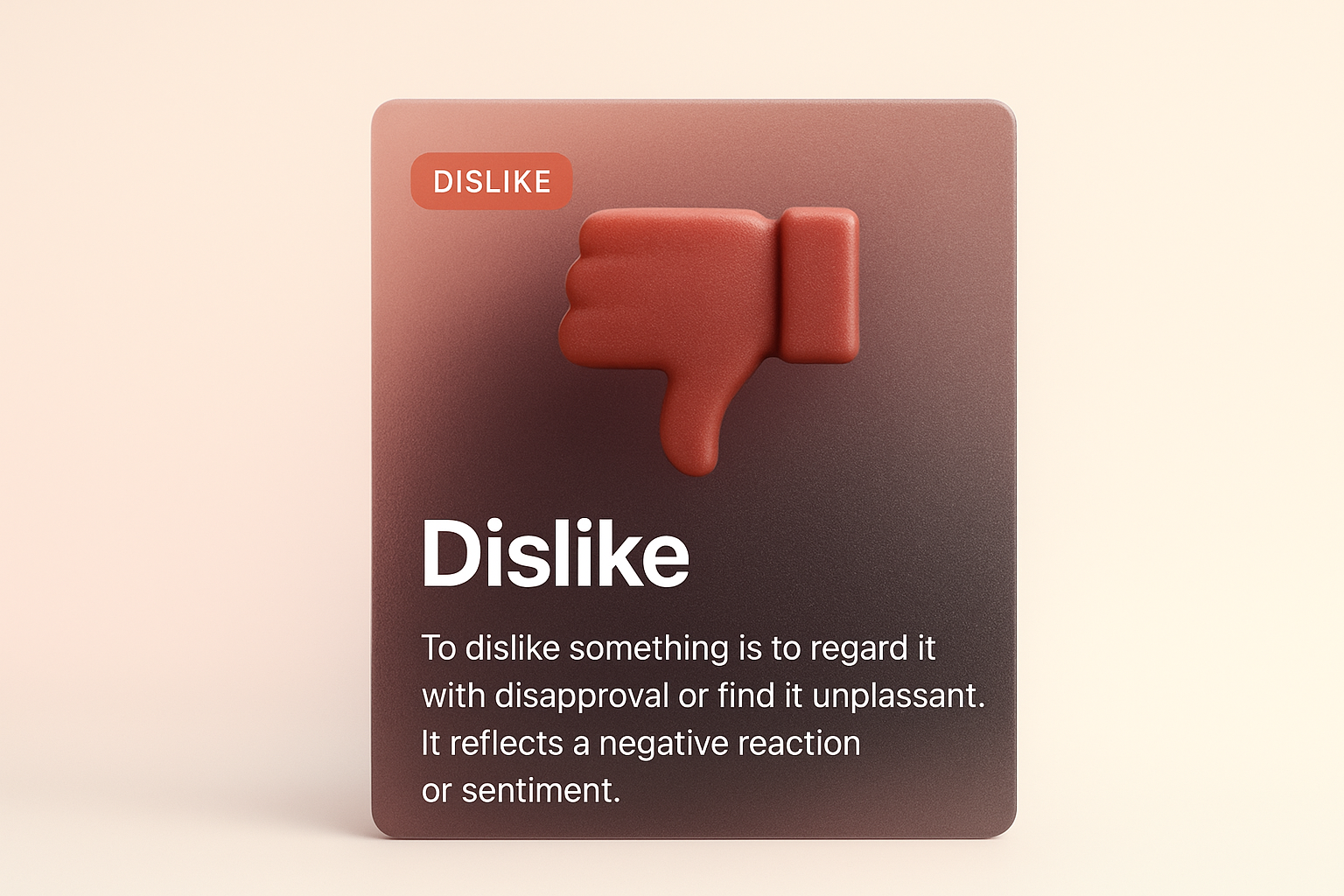 /Collection: /by davooda/Type: PNG/A 3D visual representation depicting the concept of dislike, featuring a thumbs-down icon on a transparent darkened glass panel. The design incorporates a smooth gradient background for a modern look.