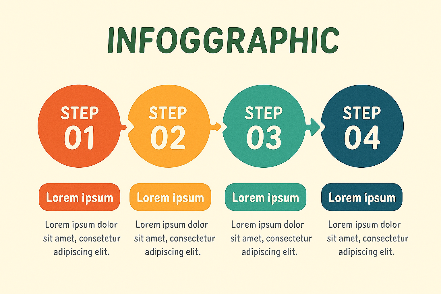 A visually engaging infographic featuring a step-by-step guide with colorful circular elements. Ideal for educational content or process explanations.