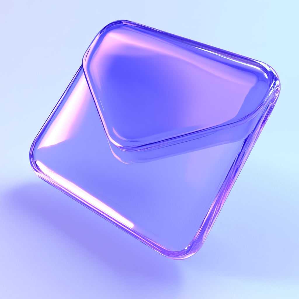 A modern, stylized 3D email icon featuring a glossy, translucent design with a gradient color effect. Ideal for digital communication themes and tech-related content.