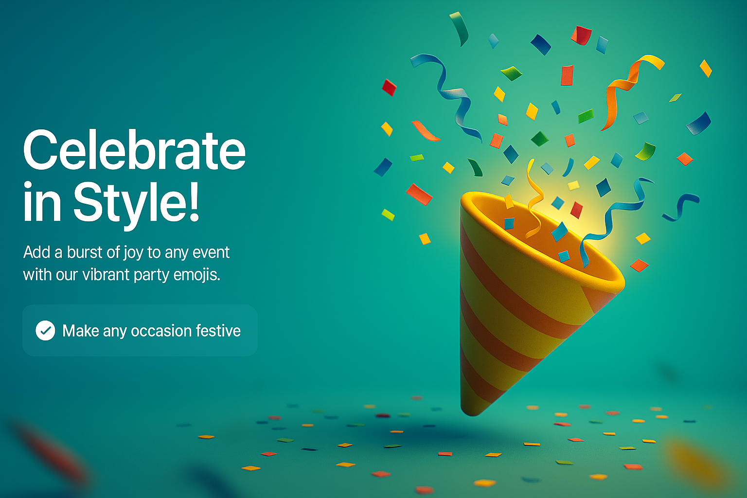 /Collection: /by davooda/Type: PNG/A dynamic 3D rendering of a yellow party popper bursting with colorful confetti, set against a vibrant solid background. The scene is lively, showcasing a festive atmosphere.