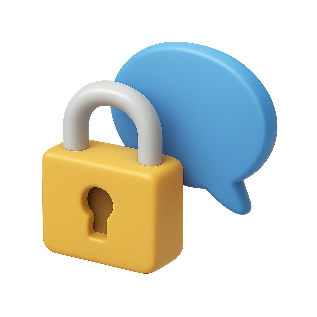 3D Lock Icon with Speech Bubble Design