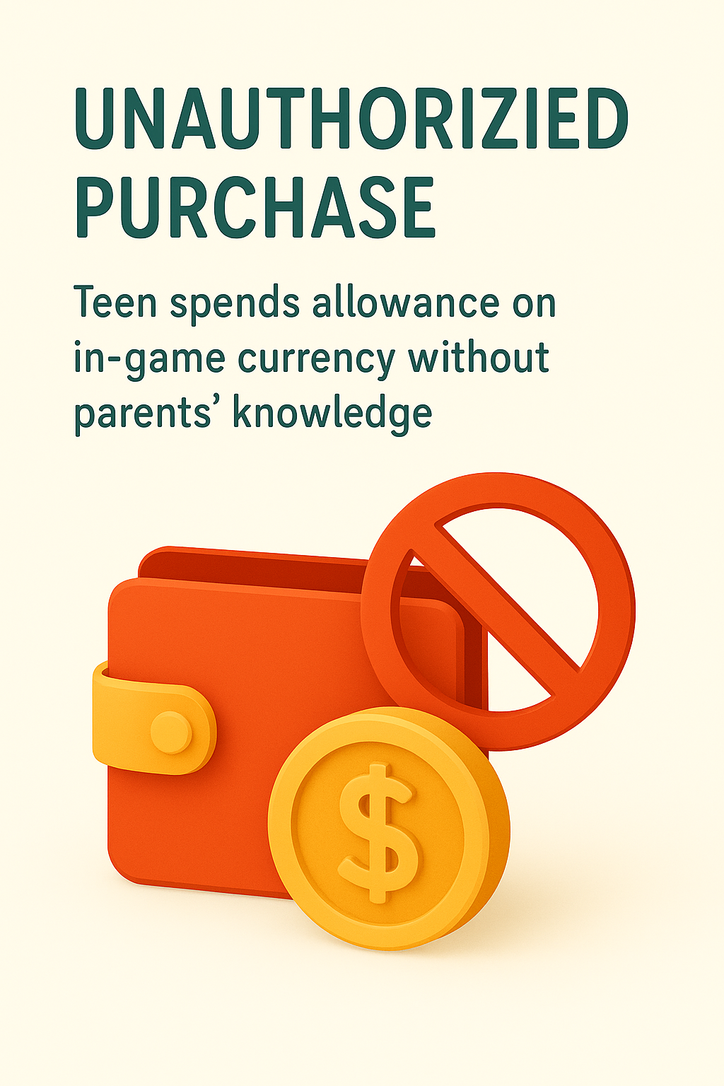 3D Illustration on Unauthorized Purchase in Gaming Context