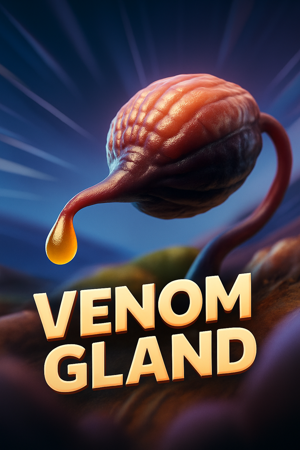 /Collection: /by davooda/Type: PNG/This vibrant image showcases a venom gland in a dynamic and engaging style. The design features a smooth gradient background and bold text, emphasizing the gland's unique structure.