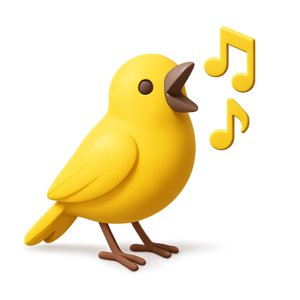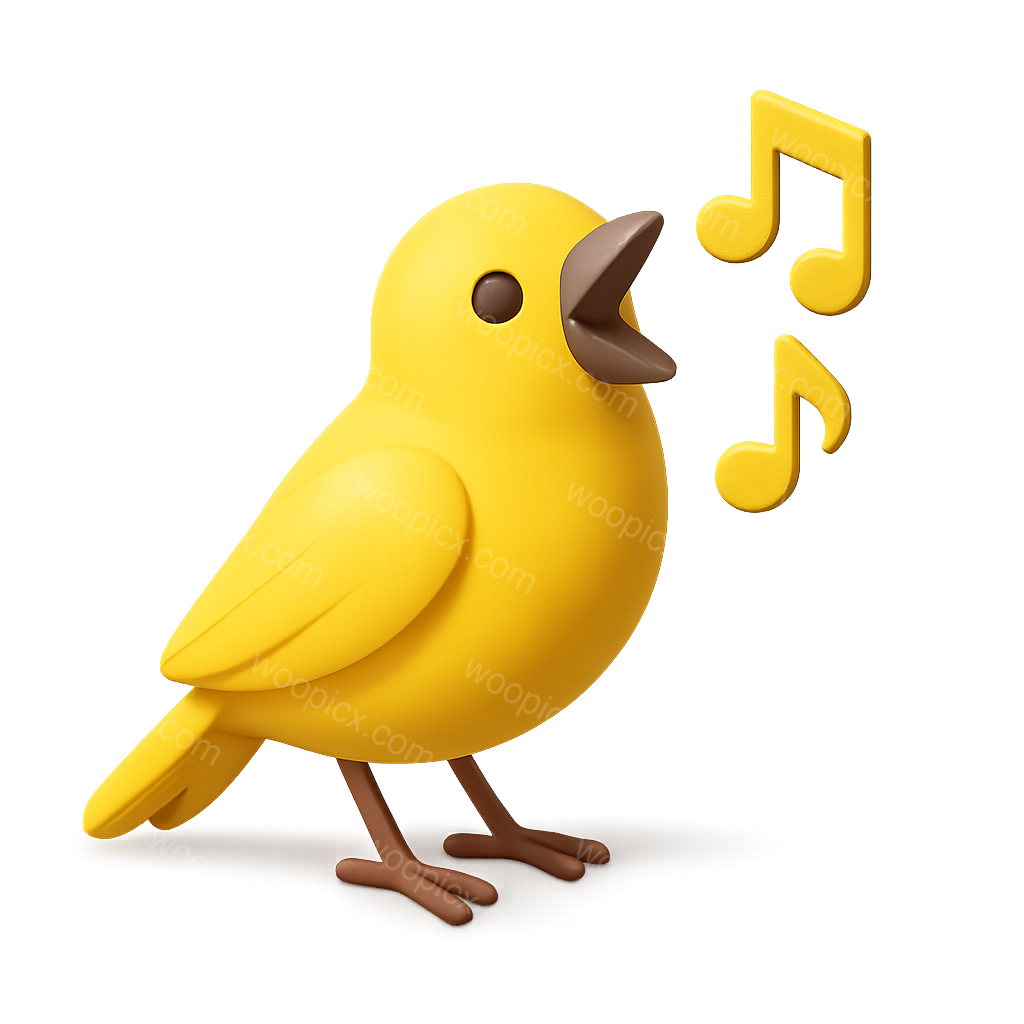 Vibrant 3D Canary Singing Icon with Musical Notes
