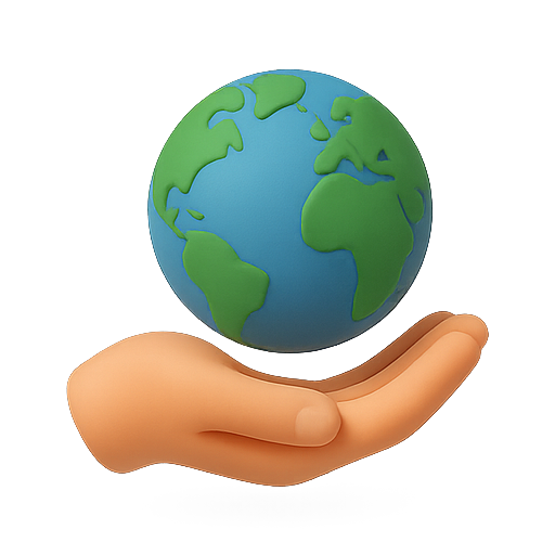 A stylized 3D illustration of a hand supporting a globe, representing global care and environmental awareness. Ideal for eco-friendly campaigns and educational materials.