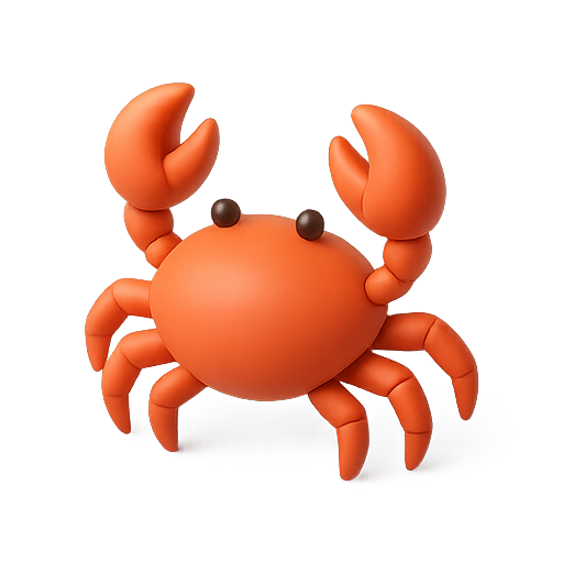 A playful cartoon-style illustration of an orange crab with exaggerated features, ideal for children's materials, marine-themed projects, or playful branding.
