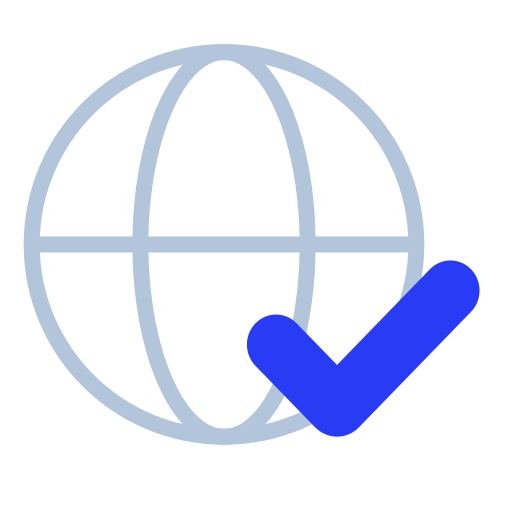 polish-blue simple icon: web, globe, checkmark, confirmation, internet