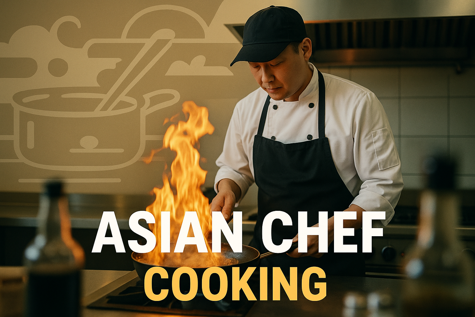 Dynamic Restaurant Cooking Scene Featuring Asian Chef