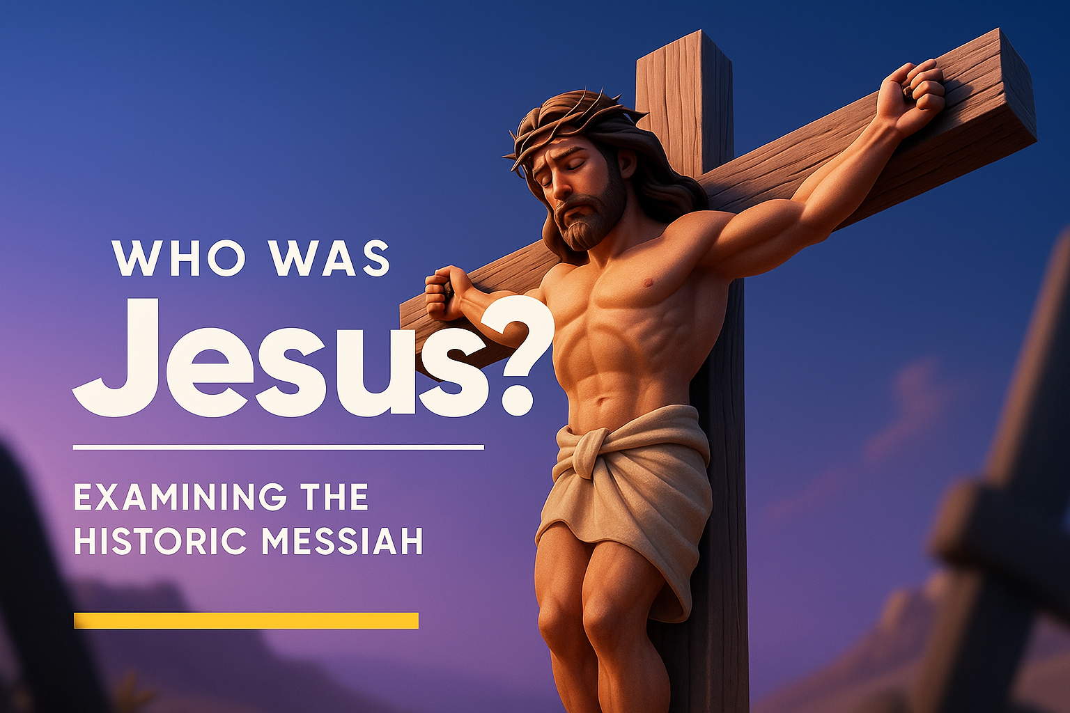 /Collection: /by davooda/Type: PNG/A dynamic 3D illustration depicting Jesus on the cross with bold text highlighting his historical significance. The scene is set against a smooth gradient background, emphasizing the main visual elements.