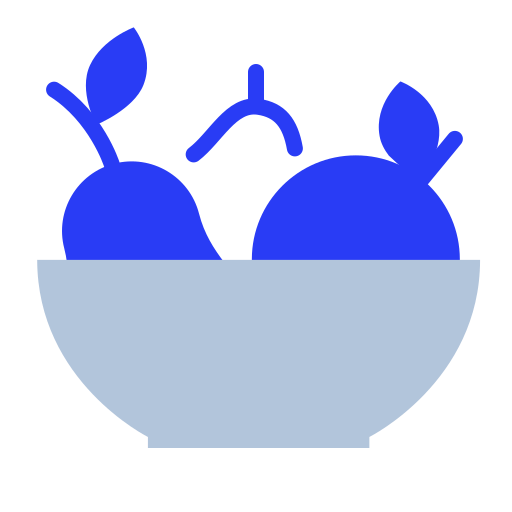 polish-blue simple icon: fruit bowl, food, fruits, apple, banana