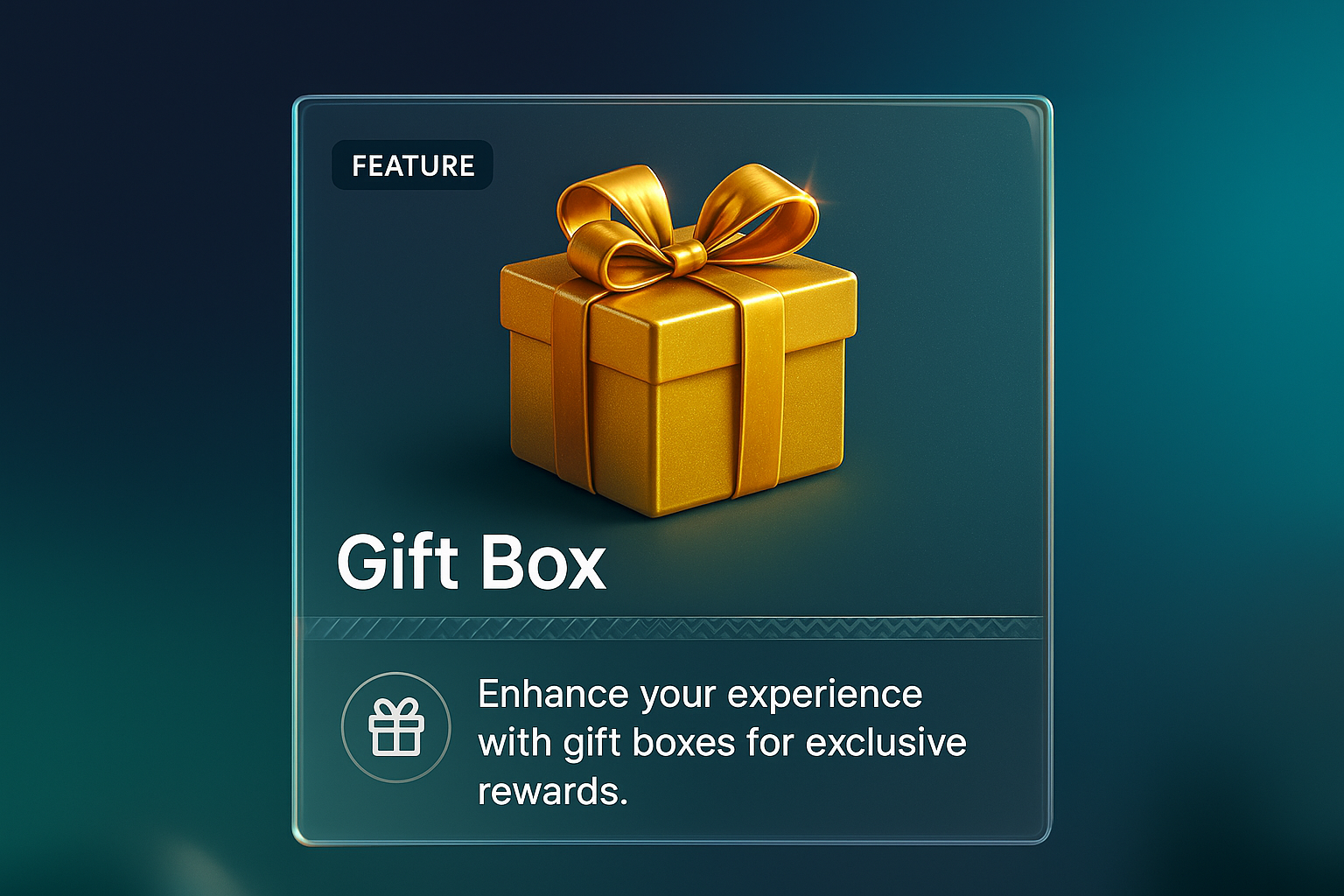 /Collection: /by davooda/Type: PNG/A visually appealing 3D rendering of a gold gift box adorned with a ribbon, set against a smooth gradient background. The design includes feature text and a subtle label for enhanced context.