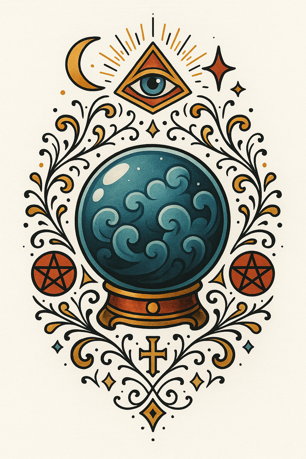 Mystical Illustration of a Crystal Ball with Esoteric Symbols