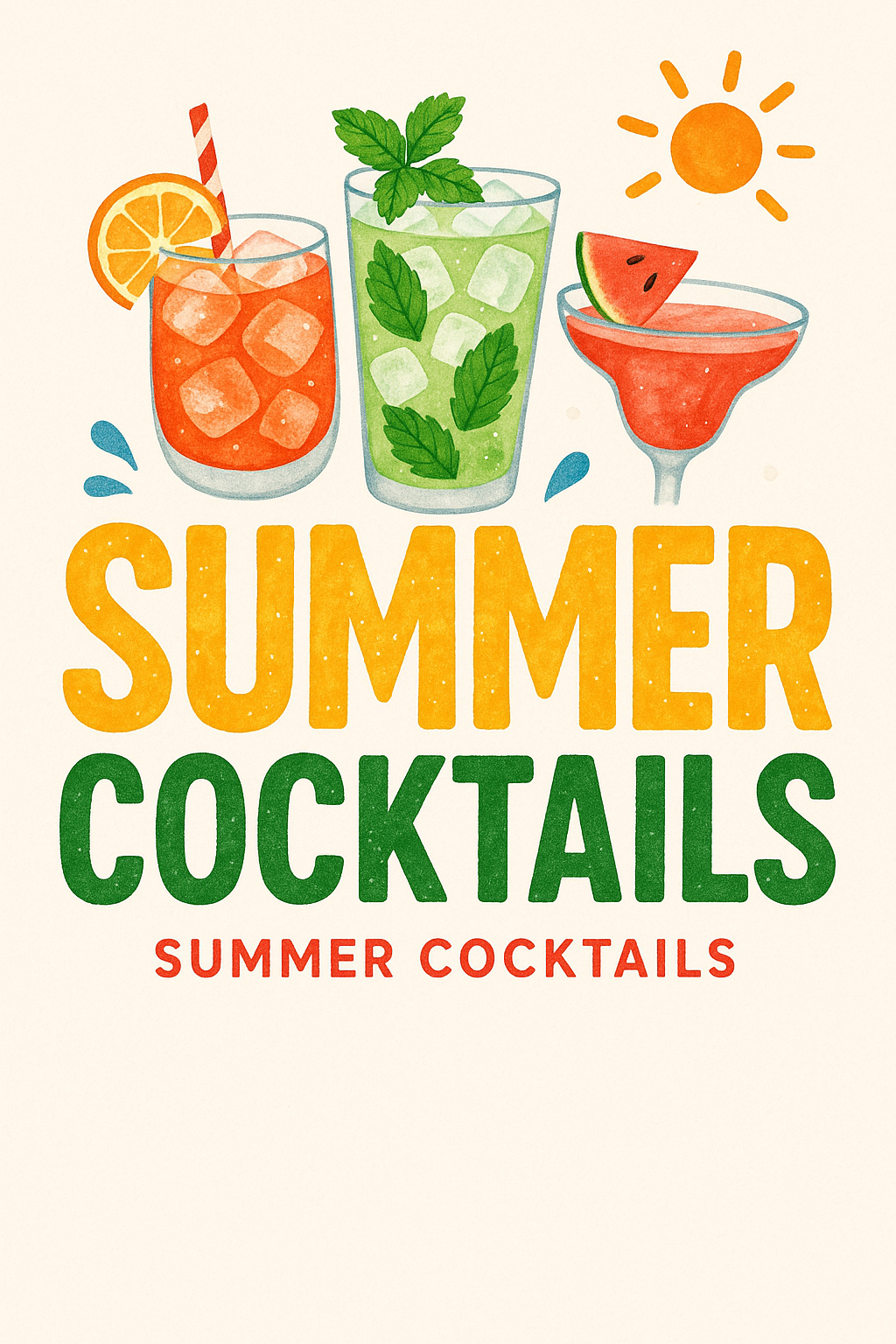 Vibrant Summer Cocktails Graphic with Refreshing Drinks