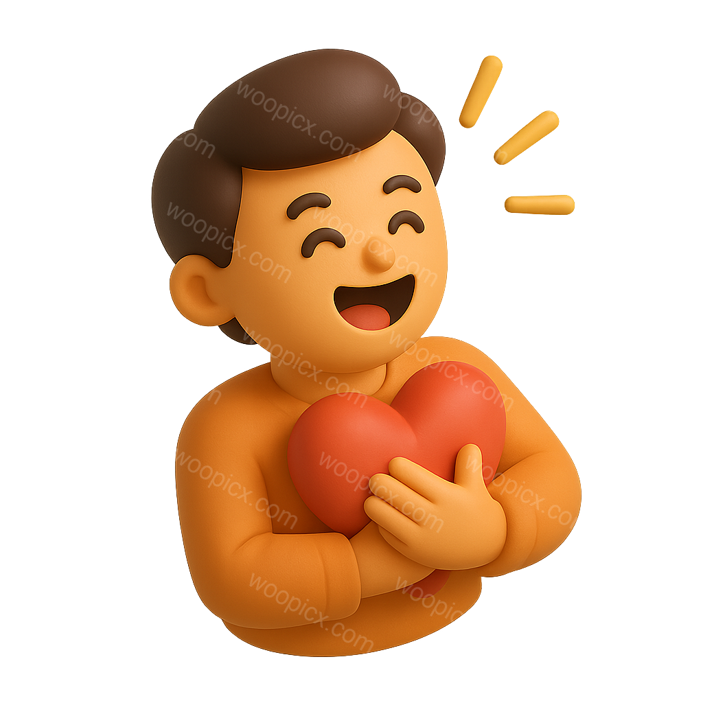A cheerful 3D character holding a heart, showcasing enthusiasm and passion. The character has a friendly expression and a warm color palette, ideal for conveying positivity.