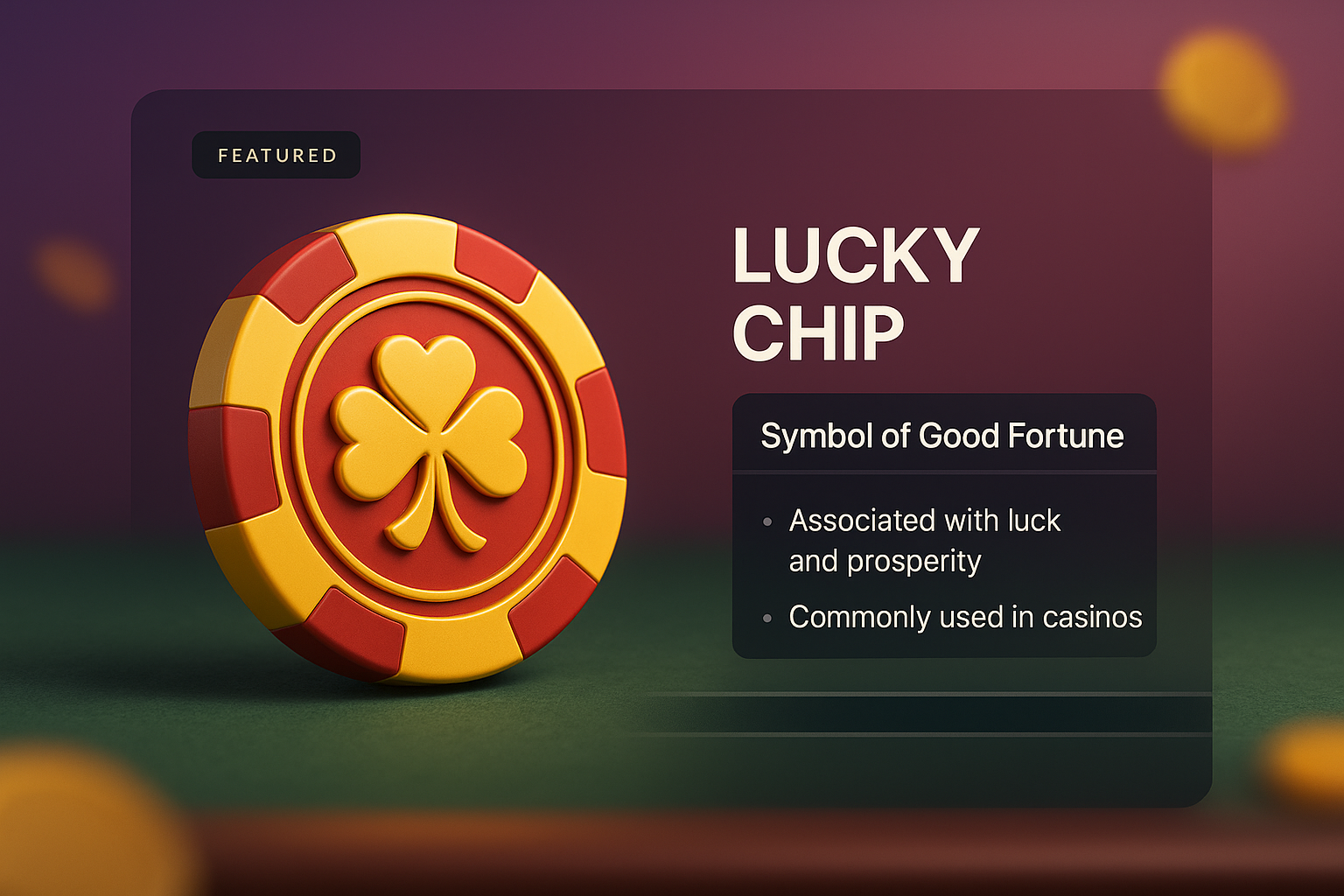 /Collection: /by davooda/Type: PNG/A vibrant 3D rendering of a lucky chip featuring a clover design. The image showcases a dark overlay with descriptive text, enhancing the illustration's context and appeal.