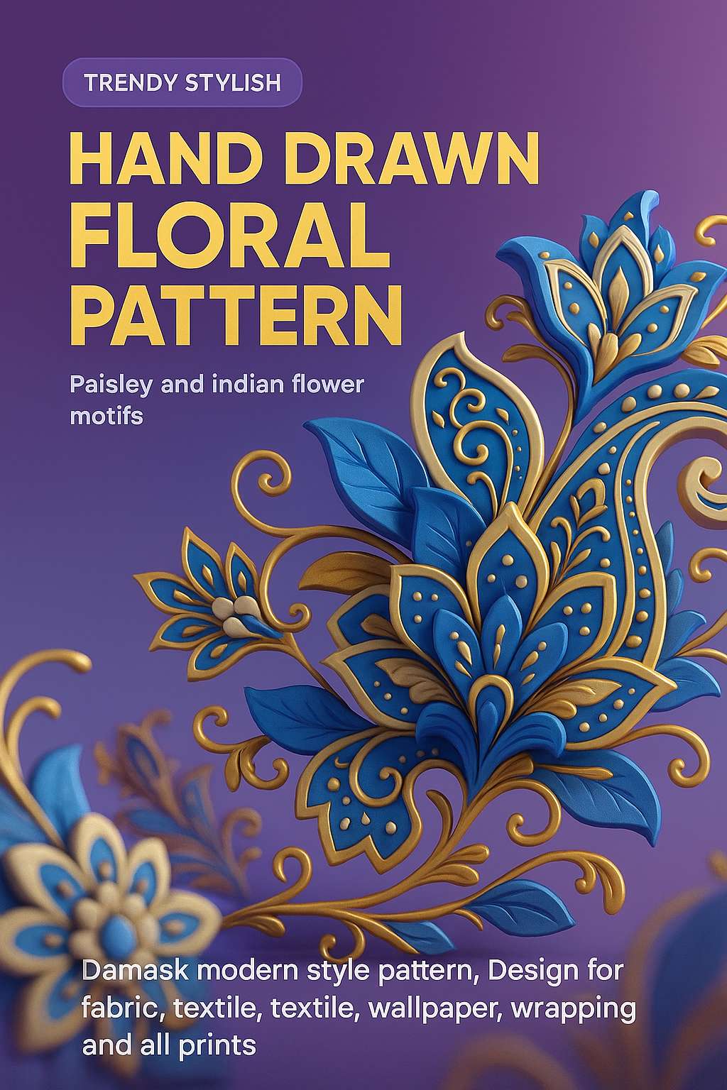 Stylish Hand Drawn Floral Pattern with Paisley Motifs