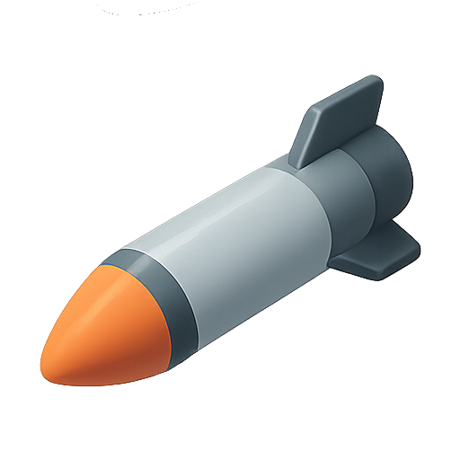 A stylized 3D rendering of a cartoon-like missile featuring a gray body and an orange tip. This graphic is suitable for educational materials, gaming, or animation projects.
