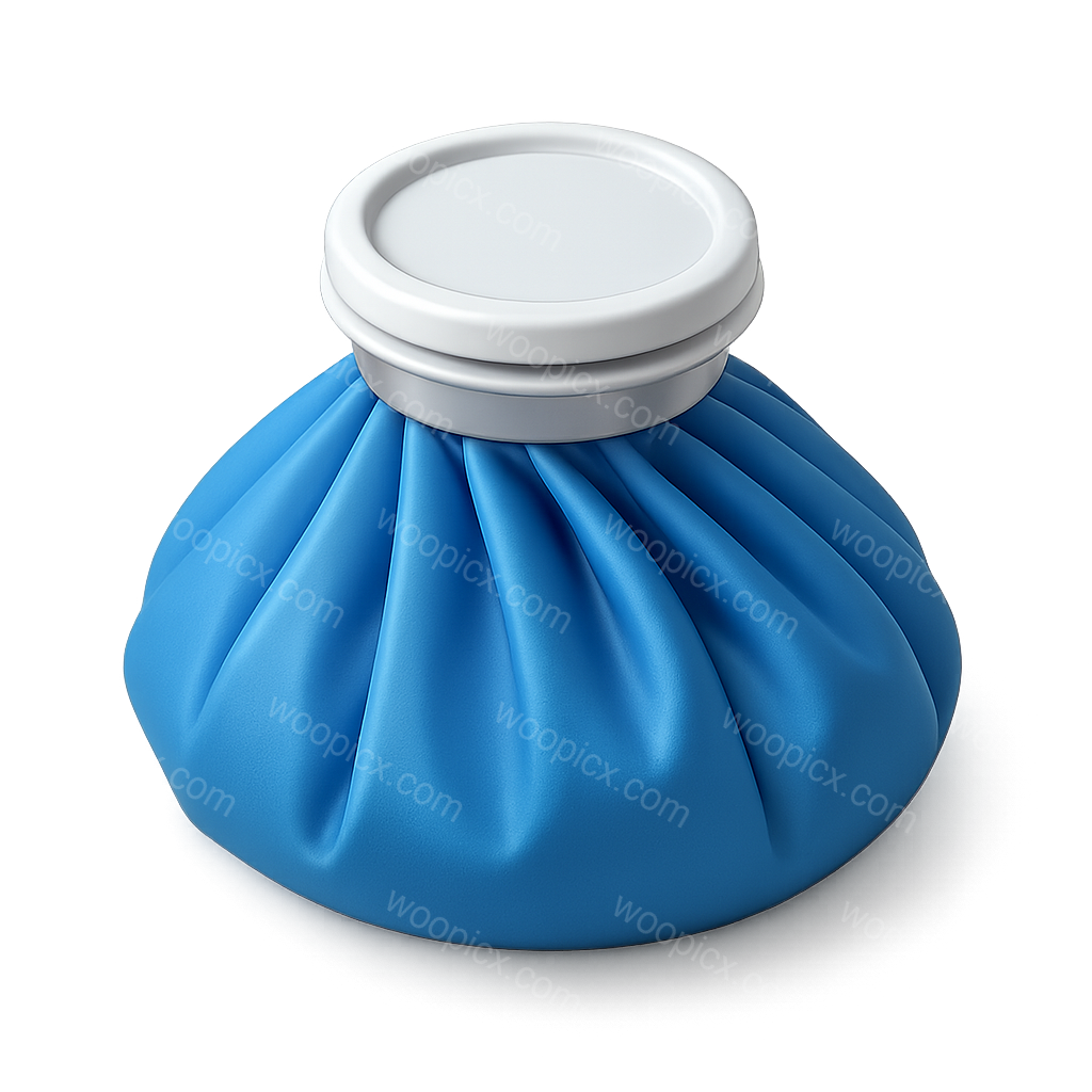 /Premium/Collection: /by davooda/Type: PNG/A visually appealing 3D icon of a blue ice pack designed for injuries, featuring a textured fabric look and a smooth, white lid. The icon is shown in a three-quarter view with a transparent background, emphasizing its volumetric design.