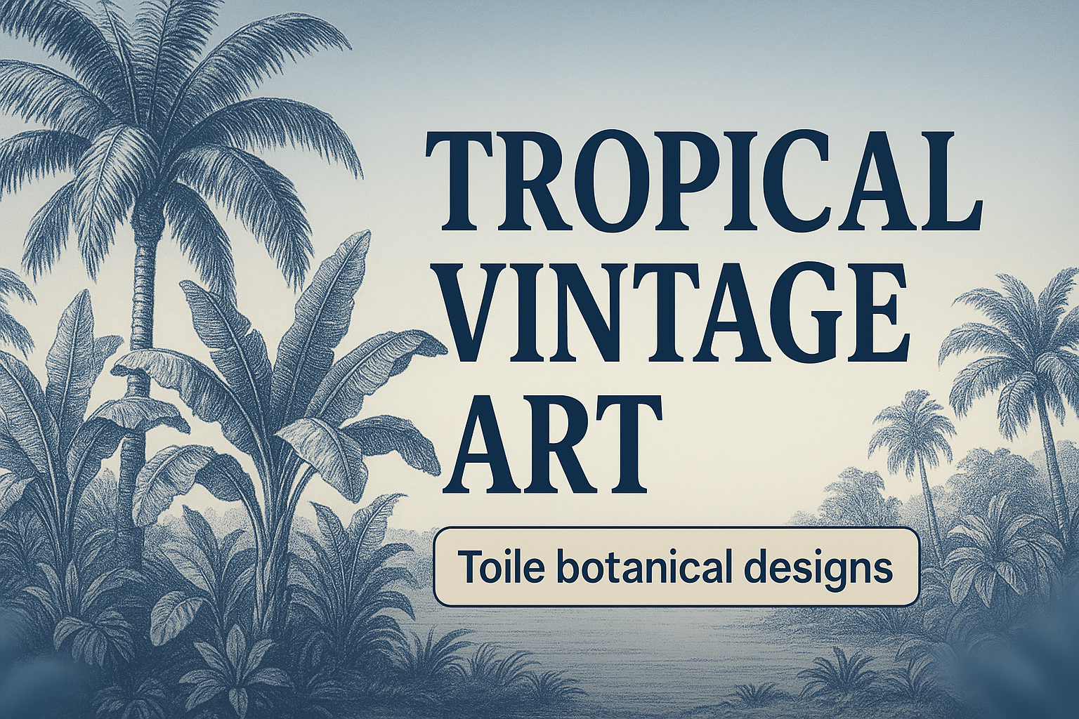 Stylized vintage artwork showcasing tropical botanical designs, ideal for decor or themed projects. The serene blue color palette evokes a calm, natural ambiance.