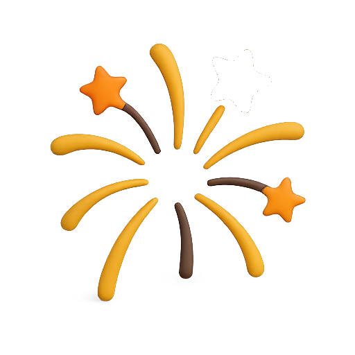 A vibrant fireworks icon featuring stylized stars and colorful spark trails, perfect for celebratory themes in digital graphics or event promotions.