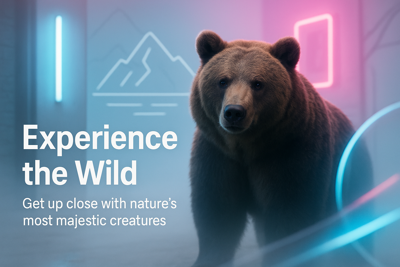 A visually striking promotional graphic showcasing a bear in a stylized environment, ideal for nature and wildlife events. The modern design combines natural elements with vibrant lighting.