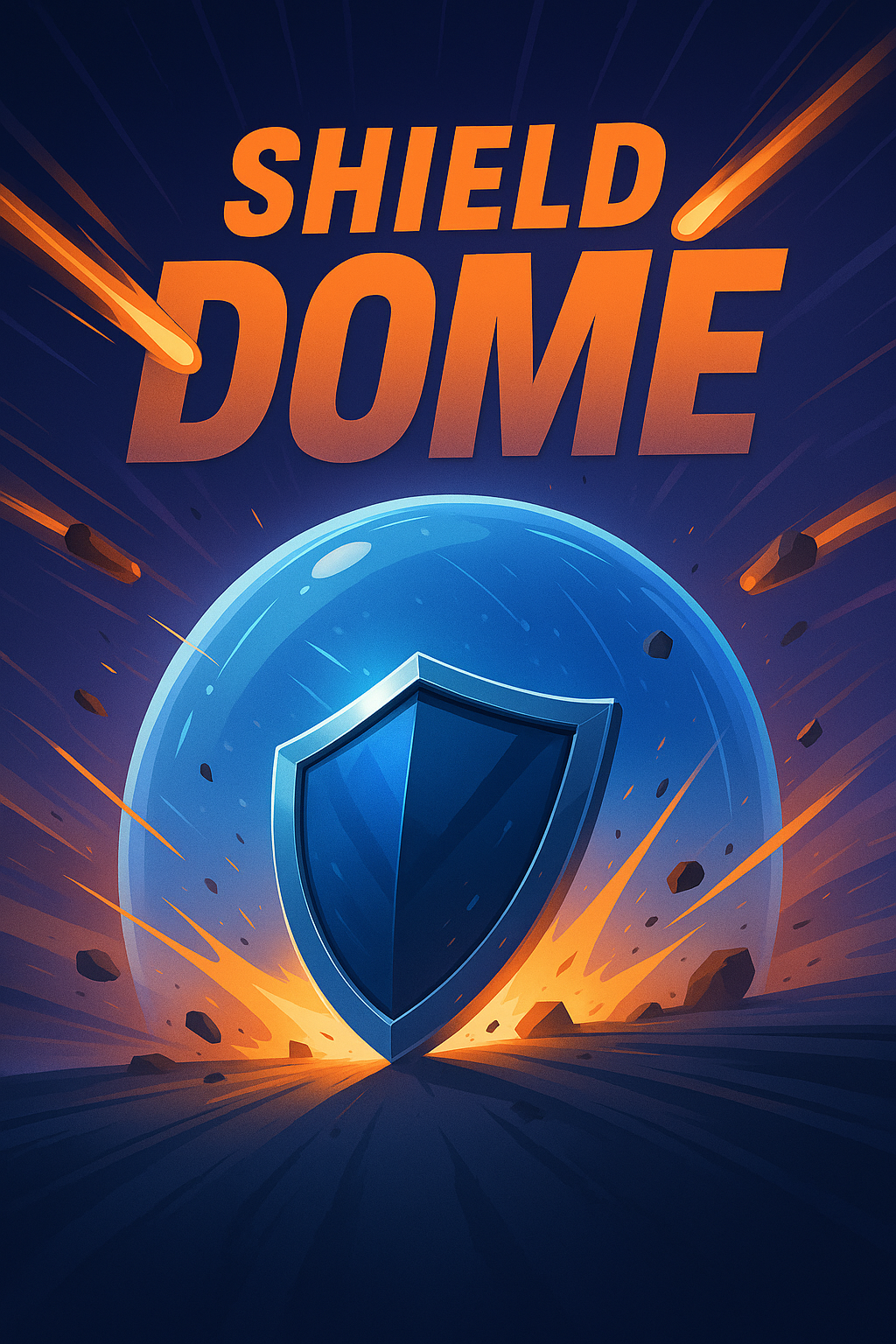 Dynamic Shield Dome Illustration with Bold Typography