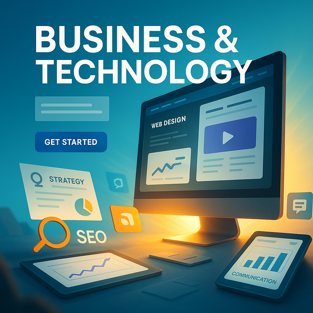 /Collection: /by davooda/Type: PNG/A visually engaging illustration showcasing business and technology concepts, featuring a computer display with web design elements and dynamic graphic components. The scene is illuminated with vibrant colors.