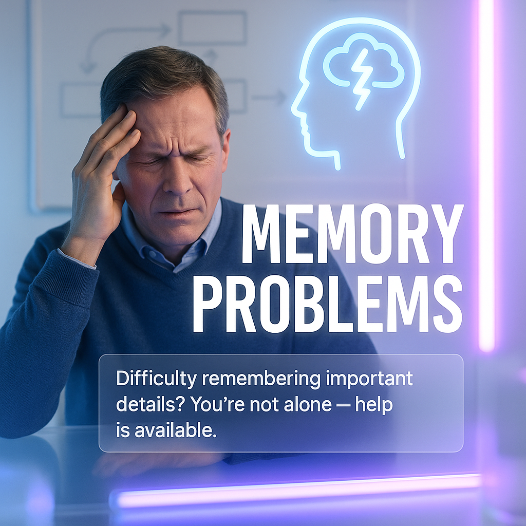 /Collection: /by davooda/Type: PNG/A visually engaging graphic designed to raise awareness about memory issues, featuring a concerned individual and supportive messaging, ideal for mental health campaigns.