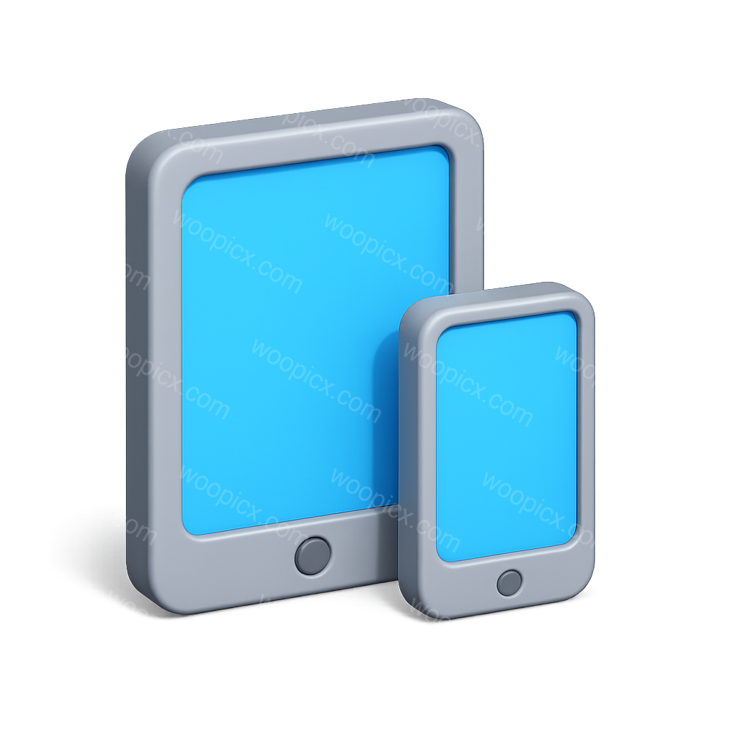 A 3D icon featuring a tablet and a smartphone in a three-quarter view. Both devices have a sleek design with a light gray frame and a blue screen, set against a soft gradient background.