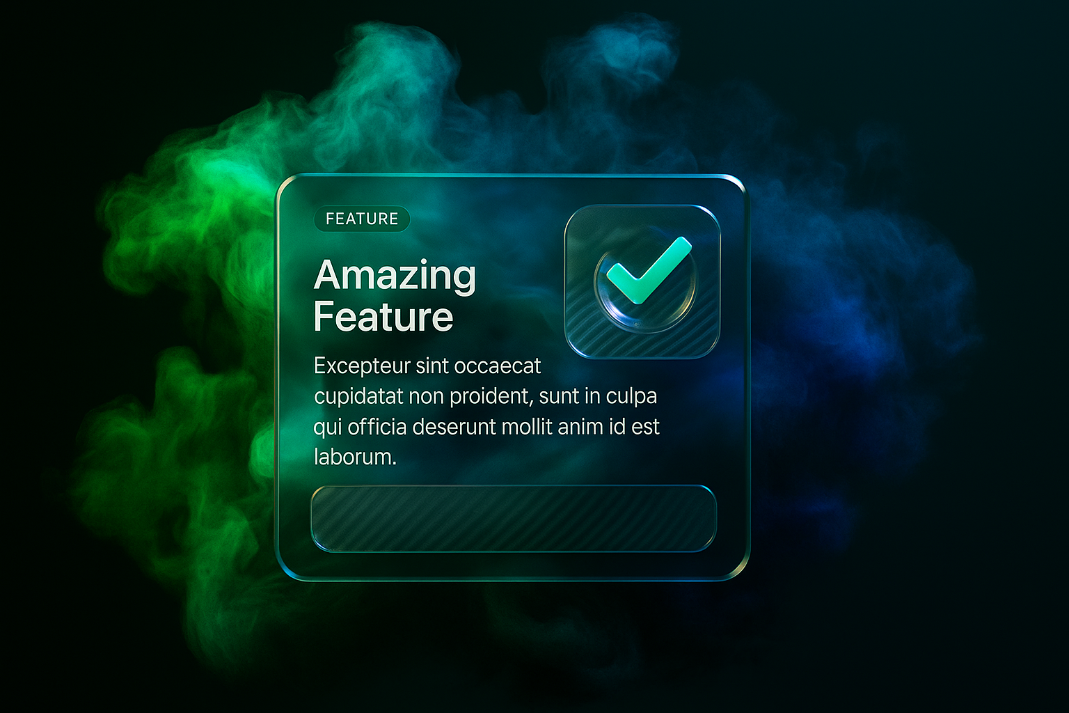 /Collection: /by davooda/Type: PNG/An abstract design featuring a cloud of green and blue smoke against a black background. The composition includes a transparent feature block with a checkmark, enhancing a spooky yet modern aesthetic.