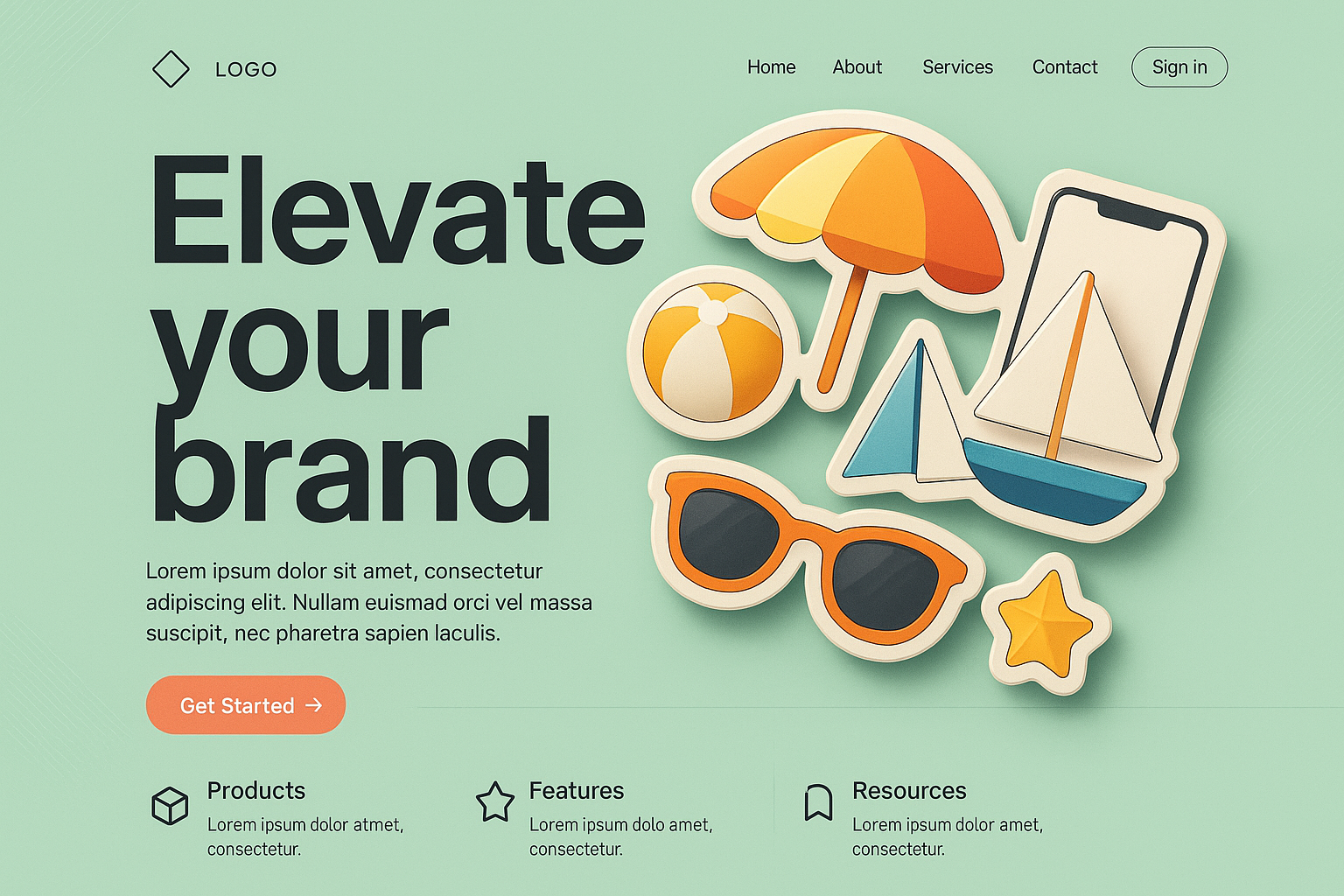 Vibrant Summer-themed Web Page Design with 3D Elements