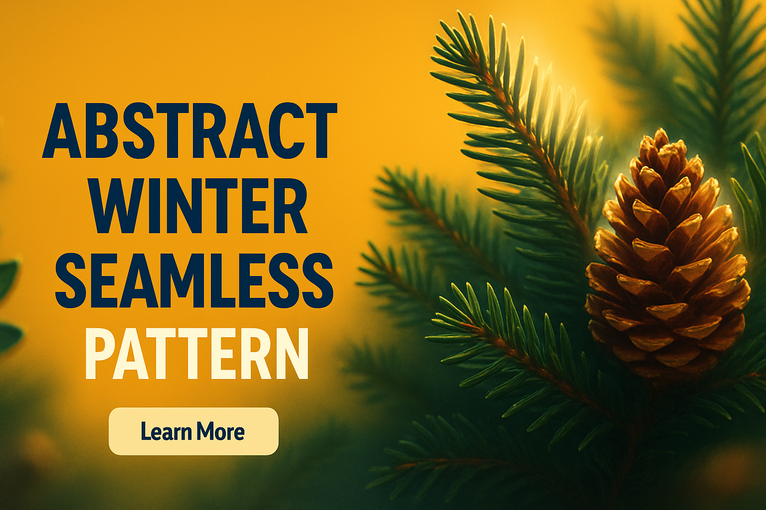 /Collection: /by davooda/Type: PNG/This image features an abstract winter pattern showcasing a pine cone and fir branches, designed for seasonal promotions or decor. It has a warm color palette and inviting visuals.