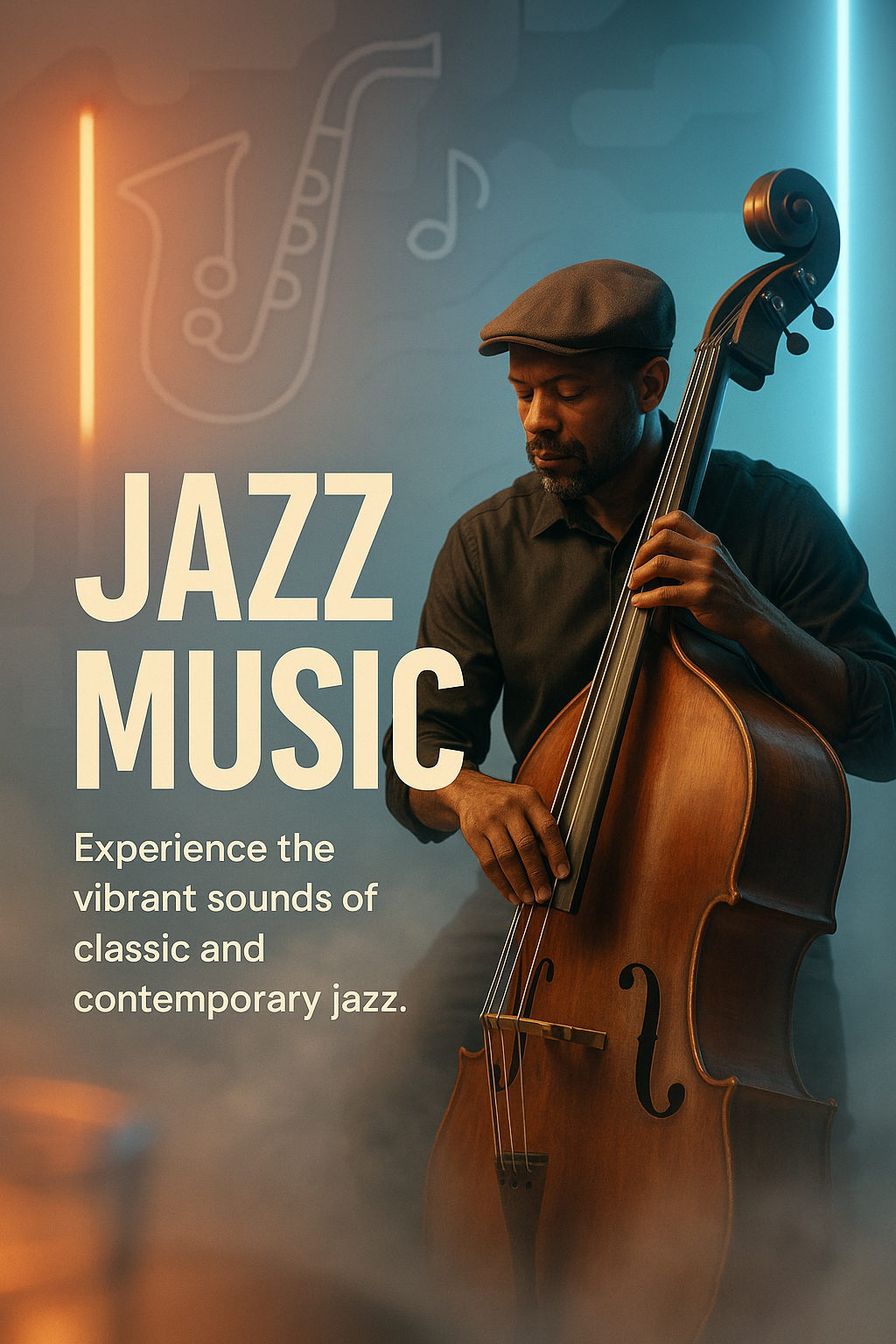 Jazz Music Promotional Graphic Featuring Musician with Double Bass