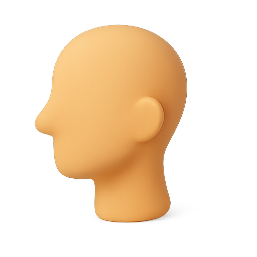 /Collection: /by davooda/Type: PNG/A minimalist 3D render showcasing a profile view of a simplified human head. The design features smooth curves and a neutral color, suitable for use in design mockups or as a placeholder in creative projects.