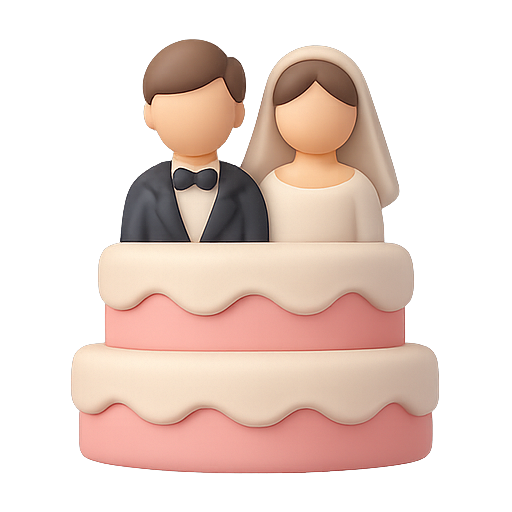 /Collection: /by davooda/Type: PNG/A charming illustration of a wedding cake topper featuring minimalist bride and groom figures atop a two-tiered cake. Ideal for wedding-related designs and celebrations.