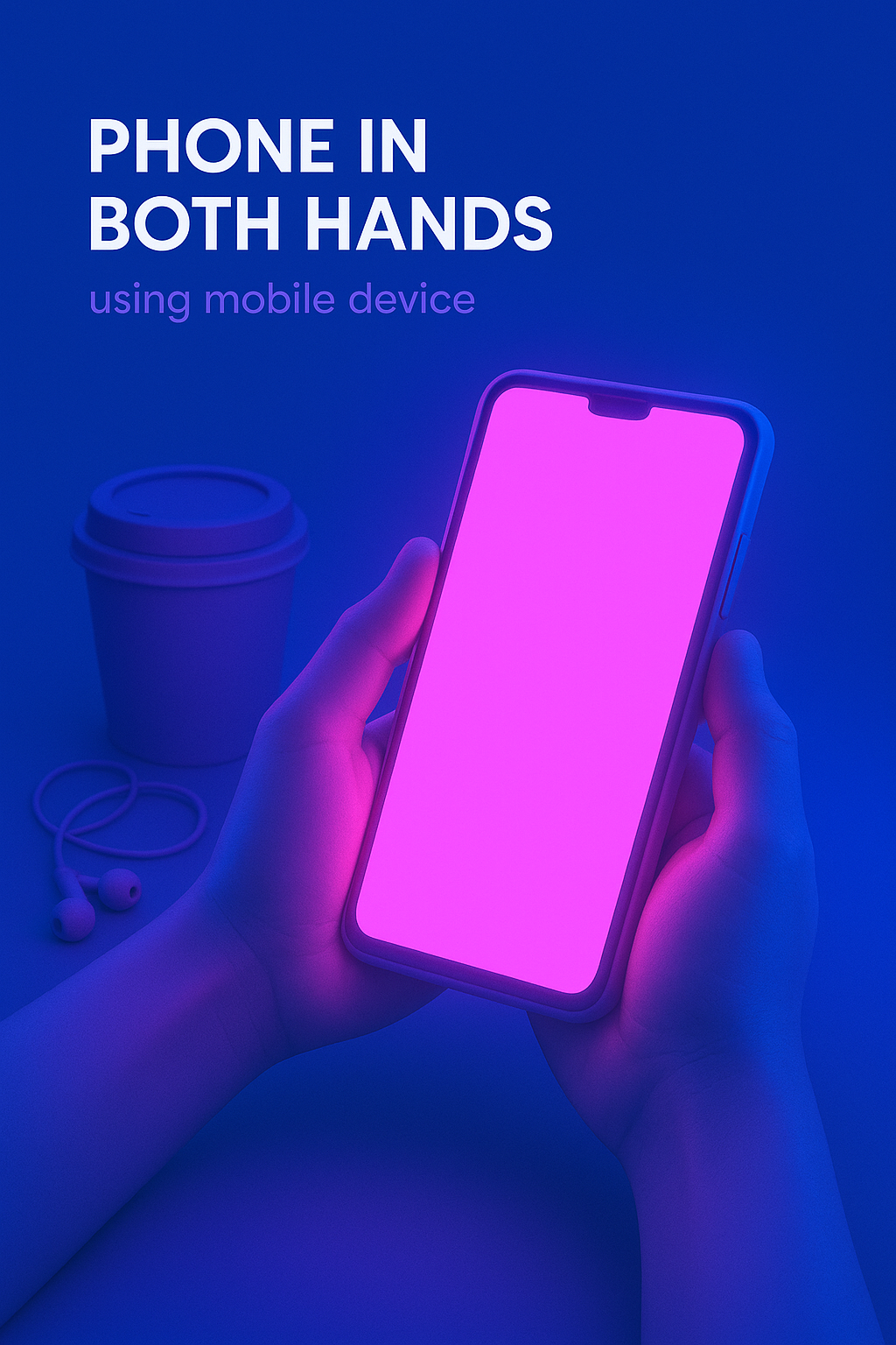Neon Glow Phone in Hands with Vibrant Blue Background