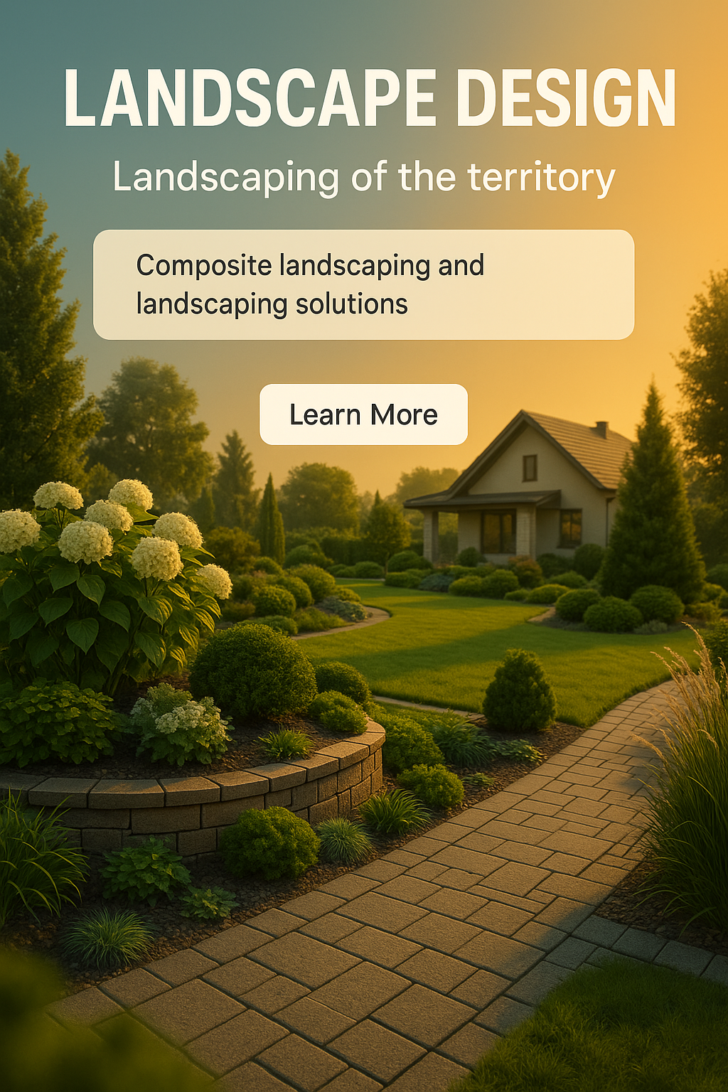 This inviting image showcases a well-designed landscape with lush greenery and a charming pathway, ideal for landscaping services or design inspiration.