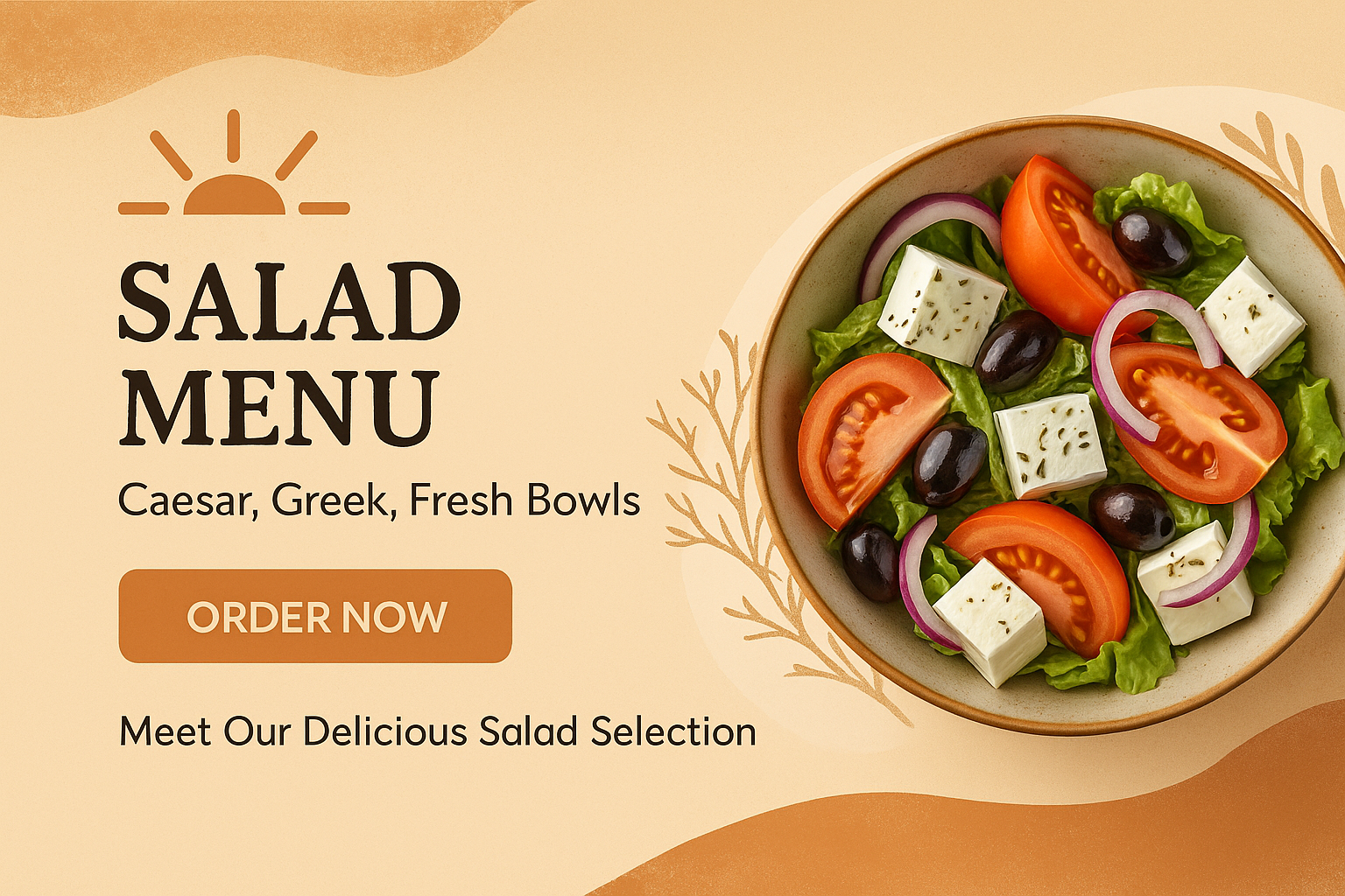 Boho Style Salad Menu Design Featuring Fresh Bowls