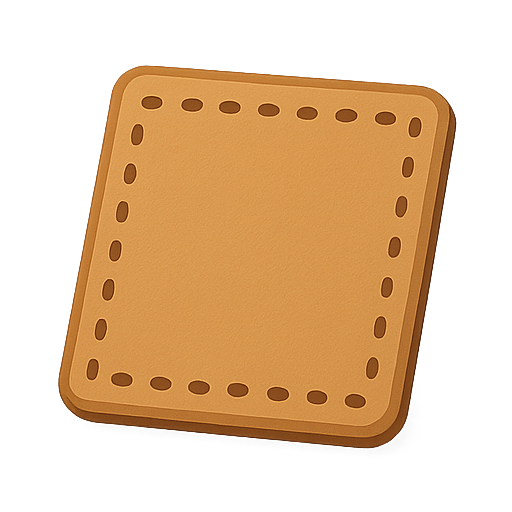 Stylized graphic representation of a brown biscuit or cookie with a stitched border, suitable for food-related applications or designs. Ideal for use in digital menus, recipe blogs, or snack branding.