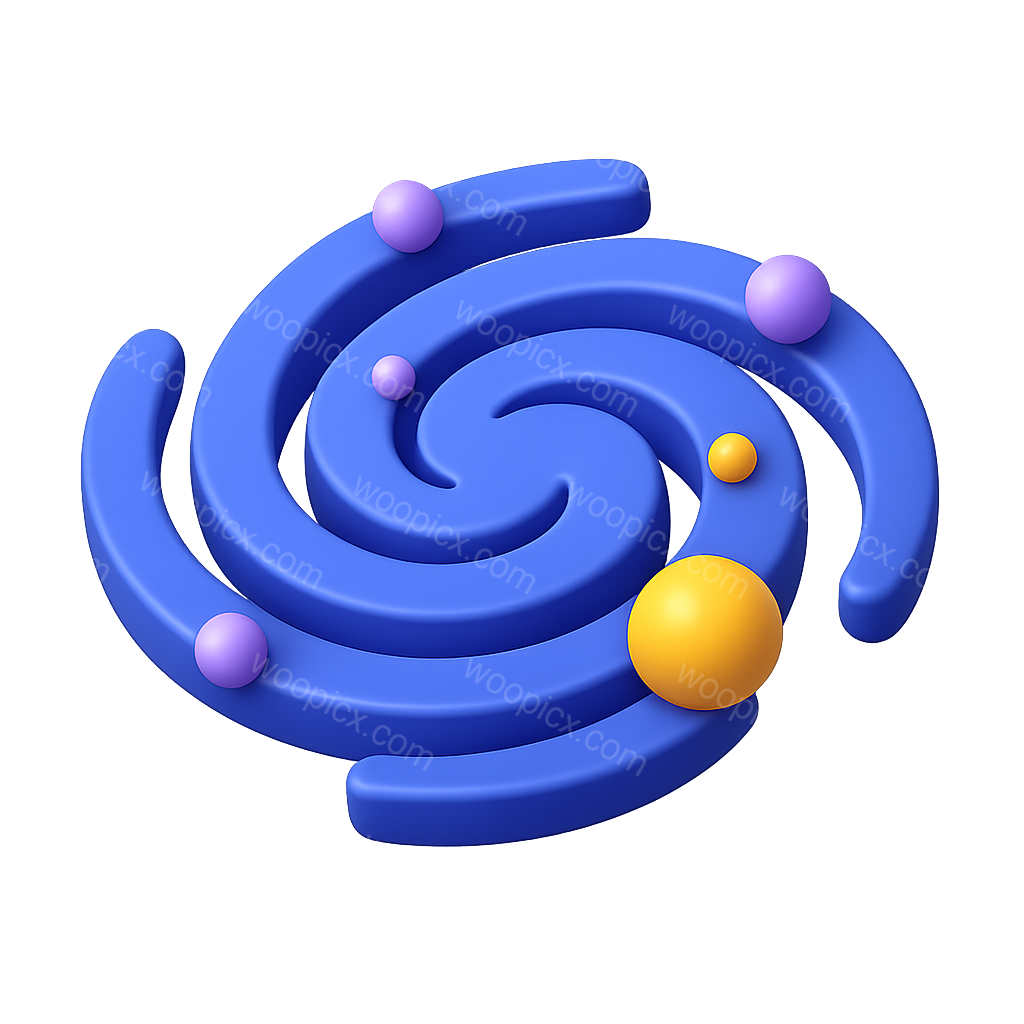 Stylized 3D Galaxy Icon with Spirals and Orbs