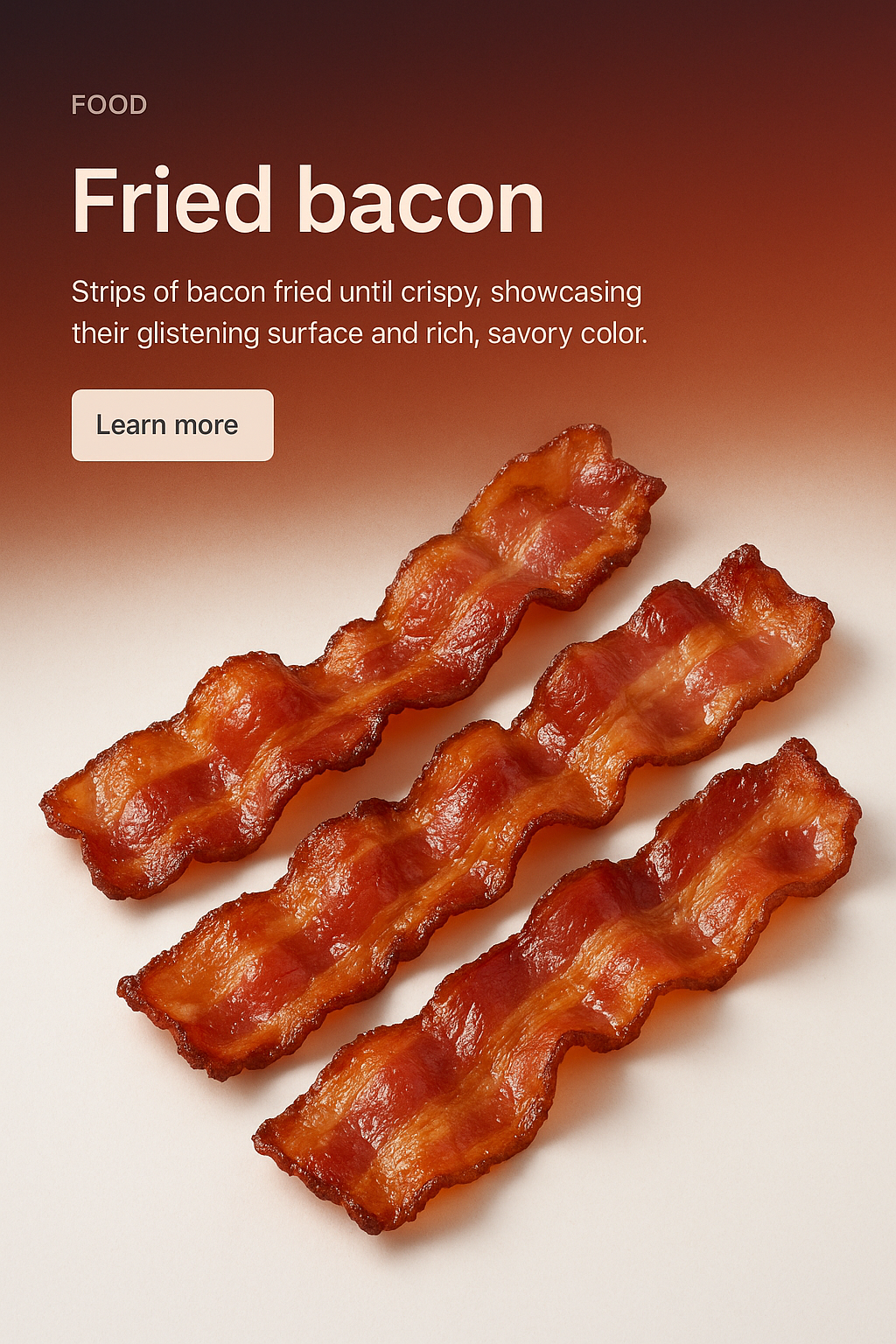 Three strips of crispy fried bacon, showcasing their glistening surface and rich savory color against a gradient background.