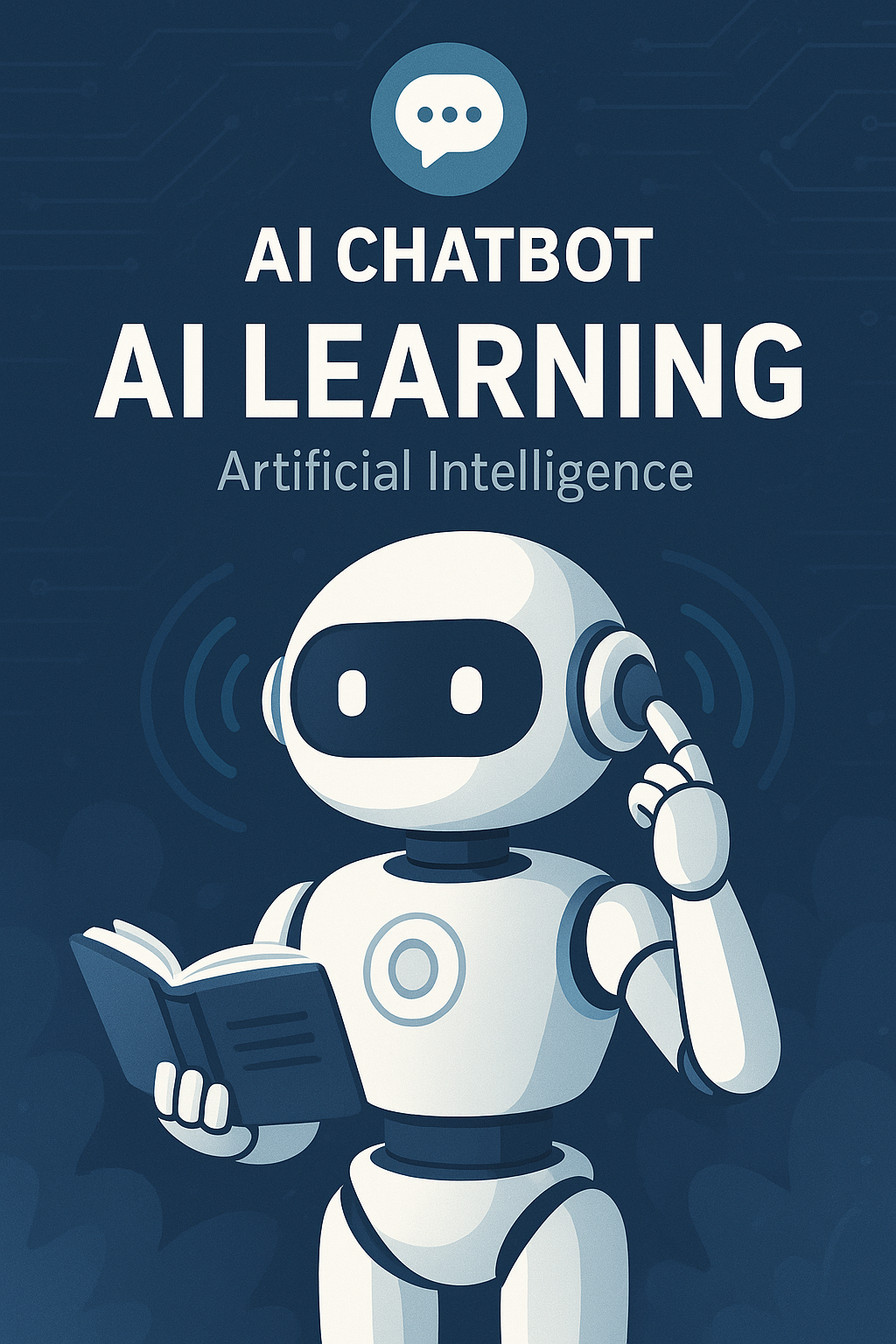 A modern illustration depicting a chatbot character engaged in AI learning, ideal for educational content related to artificial intelligence and technology.
