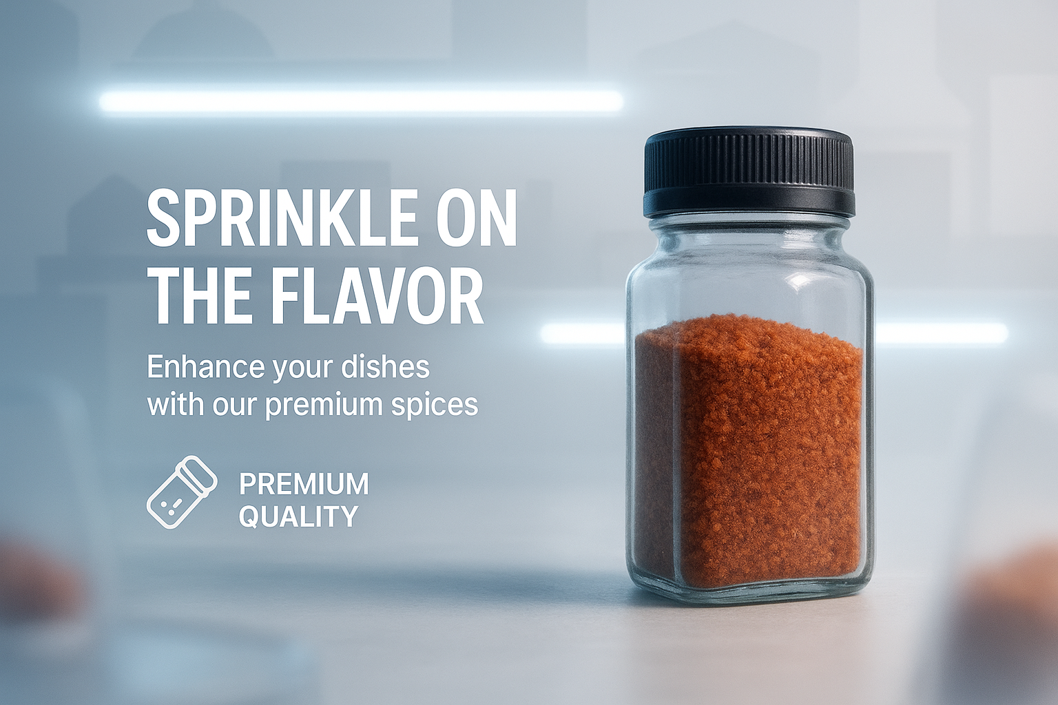 /Collection: /by davooda/Type: PNG/A visually appealing promotional image featuring a glass spice jar filled with seasoning, designed to attract culinary enthusiasts. Ideal for marketing gourmet products.