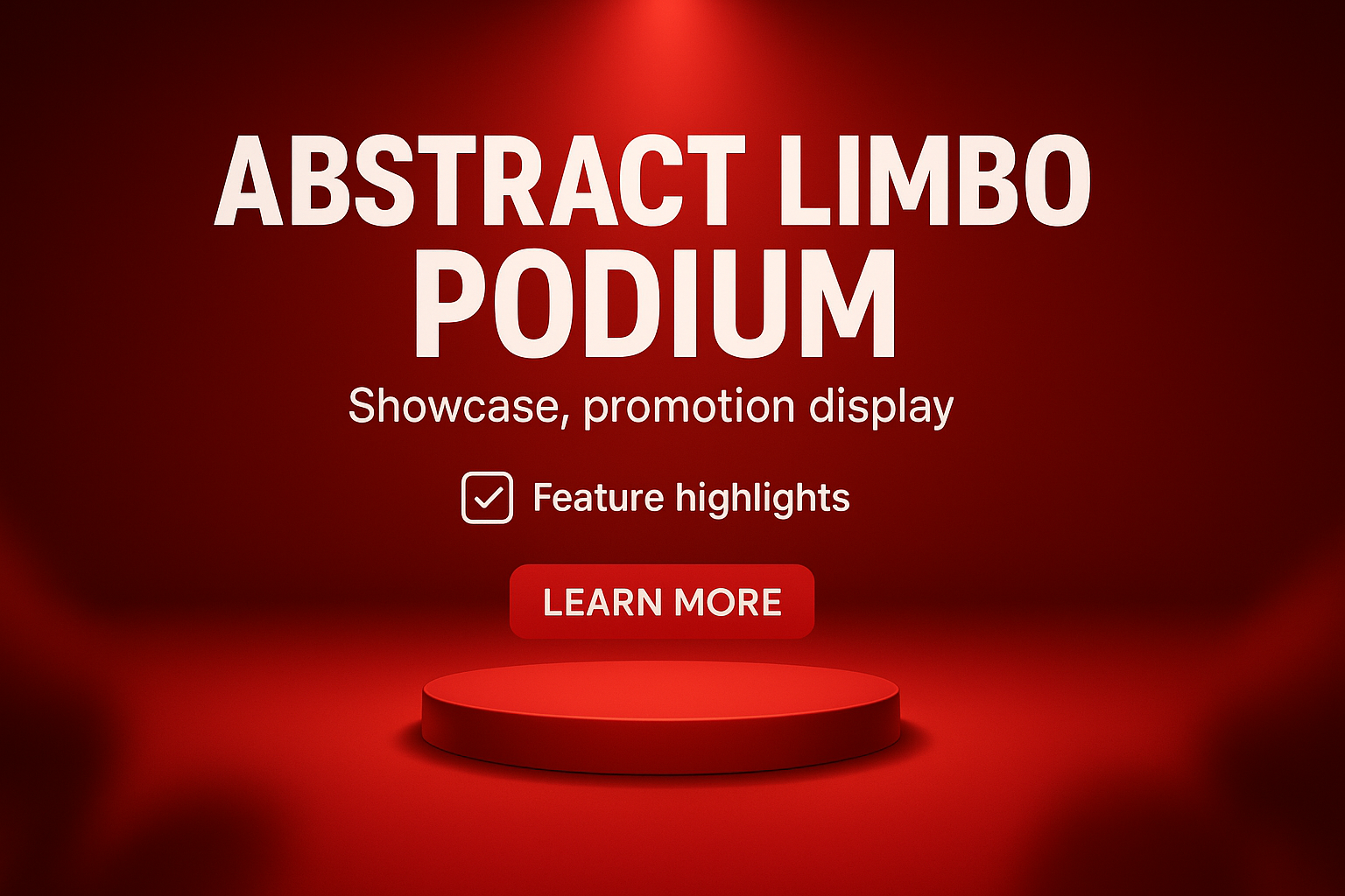 /Collection: /by davooda/Type: PNG/Digital graphic showcasing an abstract podium design suitable for promotional displays. The bold red background and clean typography create a striking visual impact for marketing purposes.