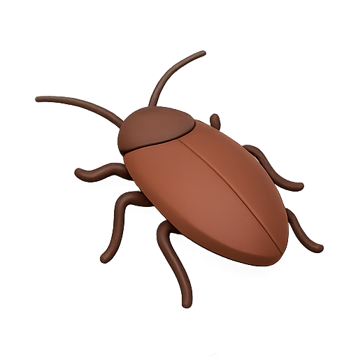 A stylized 3D illustration of a cockroach, featuring smooth shapes and a simplistic design. Ideal for educational materials or pest control awareness.