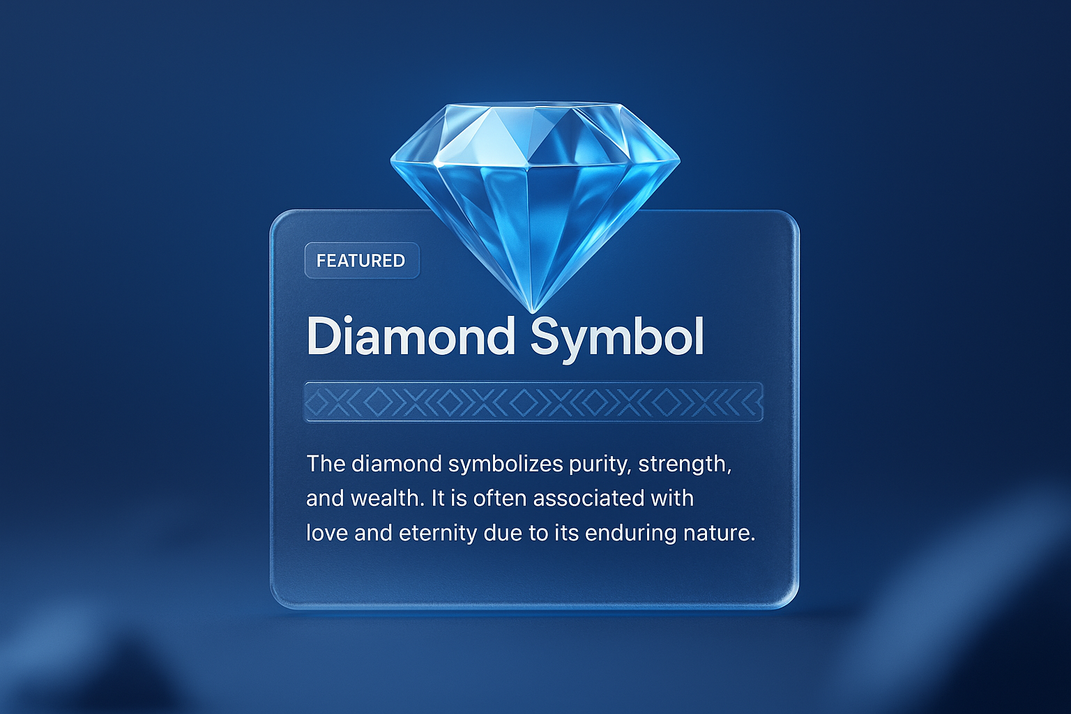 A modern design featuring a 3D diamond symbol above a text block. The layout includes a gradient background, a clear label, and descriptive text about the diamond's significance.