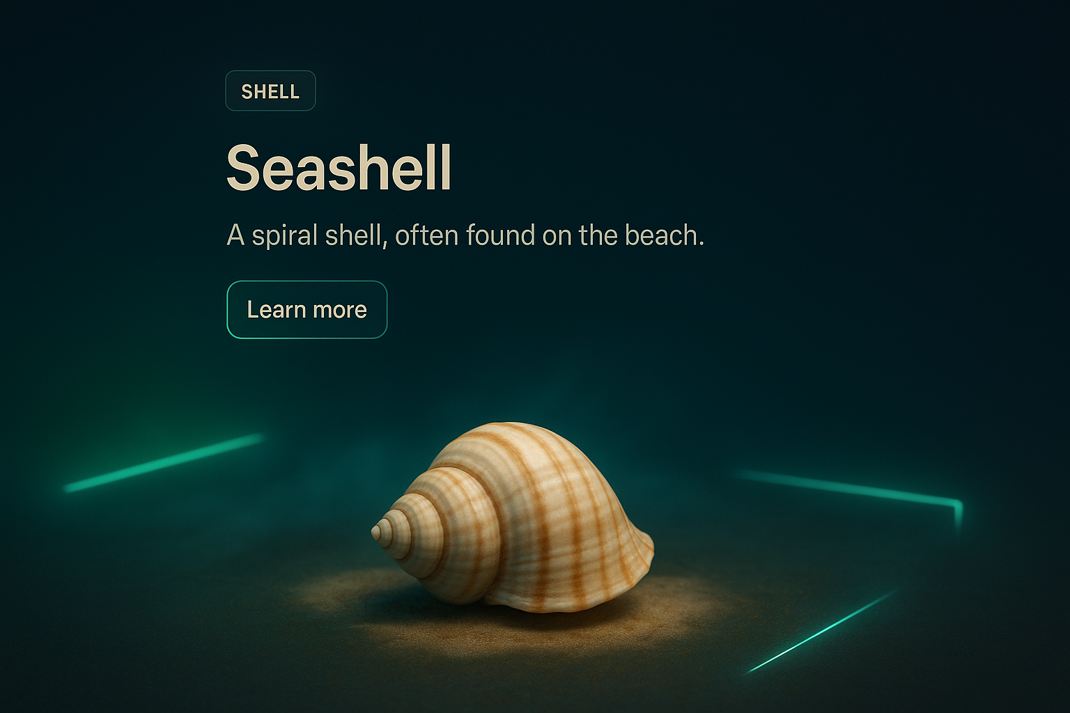 /Collection: /by davooda/Type: PNG/A detailed 3D illustration of a spiral seashell, set against a dark gradient background. Neon accents and soft glowing lights create a captivating atmosphere, emphasizing the shell's texture and surroundings.