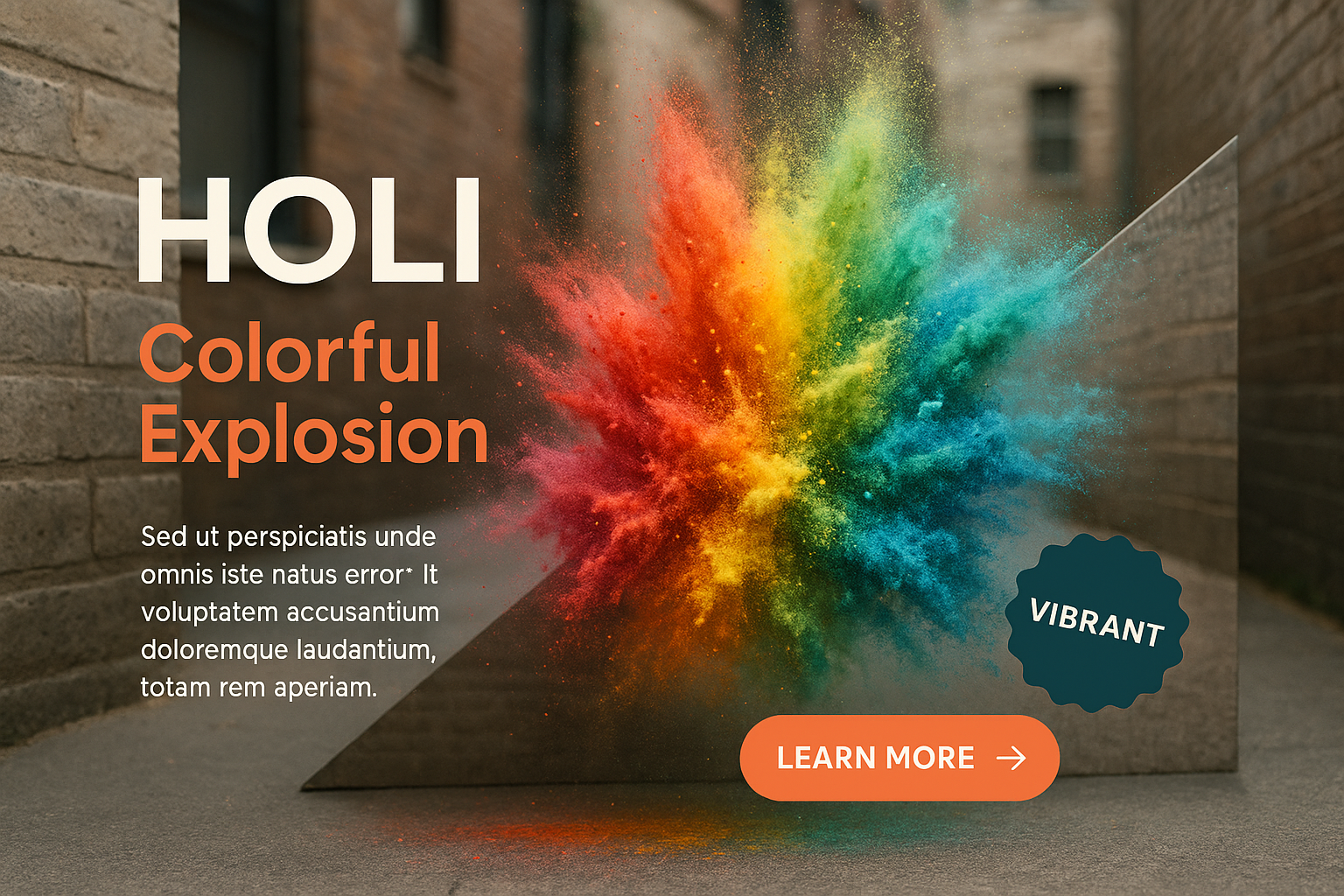 /Collection: /by davooda/Type: PNG/An abstract closeup of a colorful powder explosion, featuring vibrant hues of red, blue, green, and yellow. The dynamic visual creates an energetic backdrop, capturing the essence of the Holi festival.