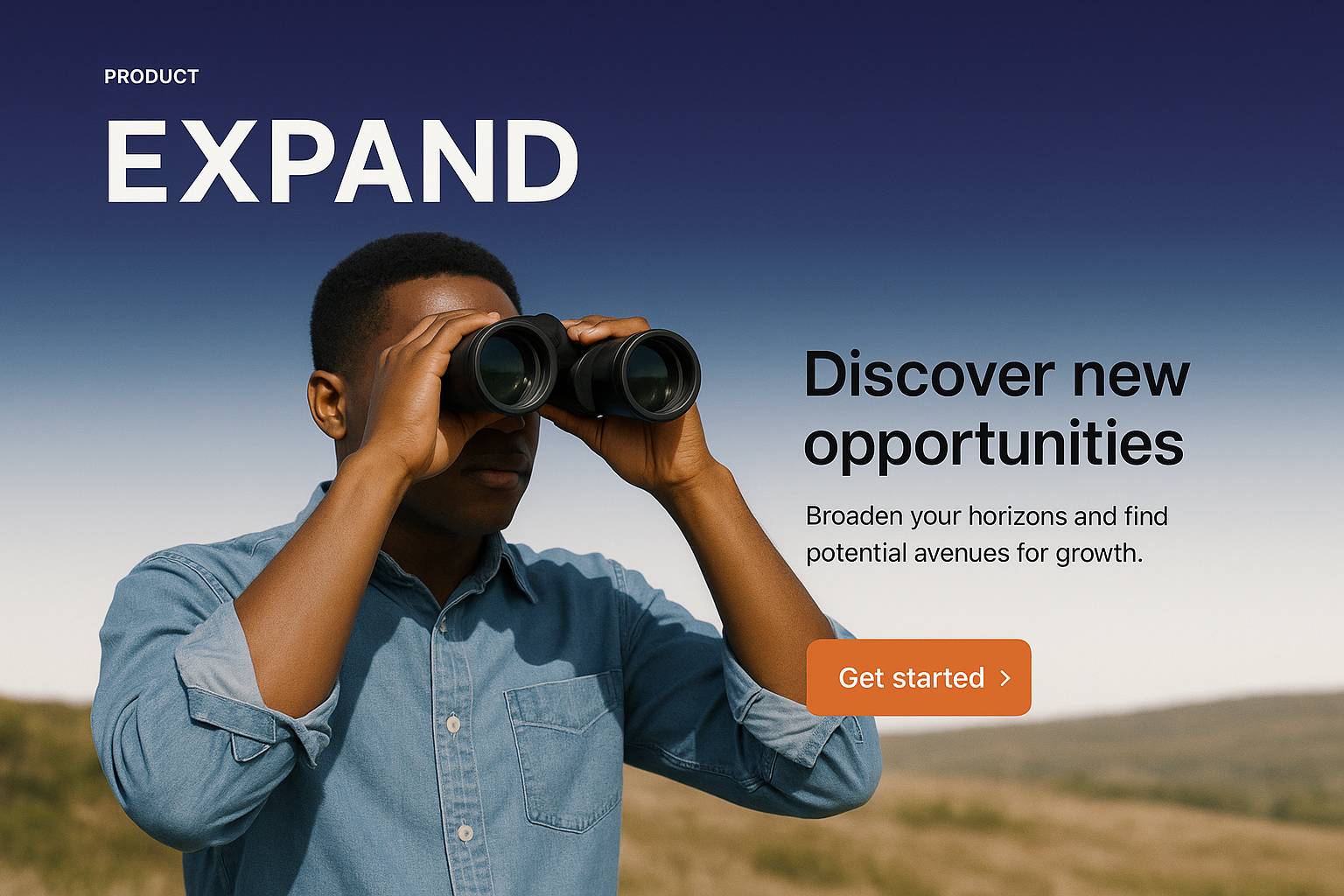 Stylish Web Design Featuring Binoculars and Call-to-Action